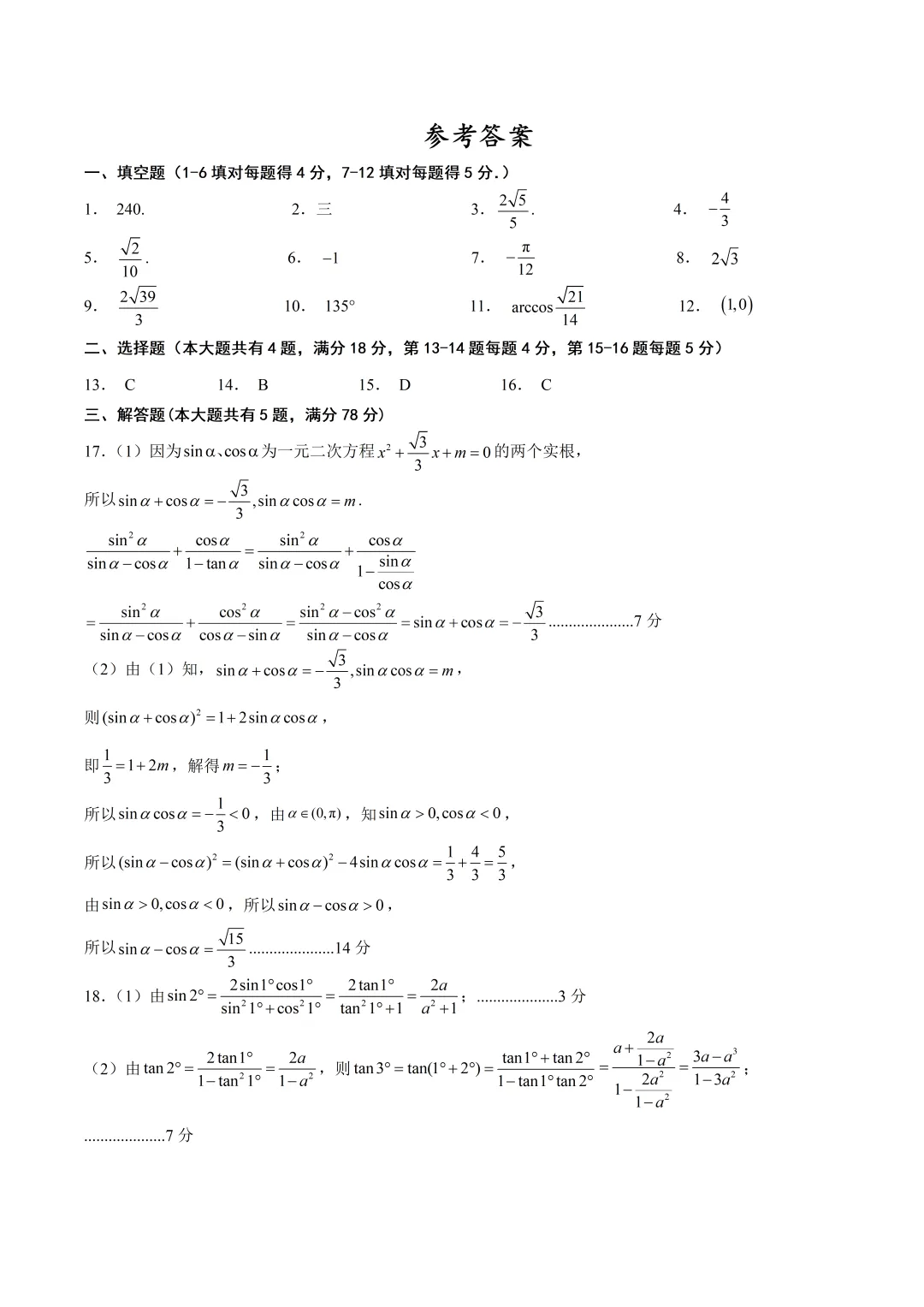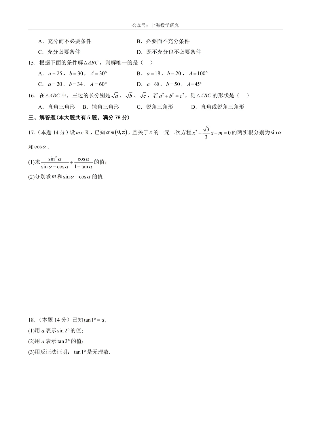 沈阳二中12月月考试卷及答案!