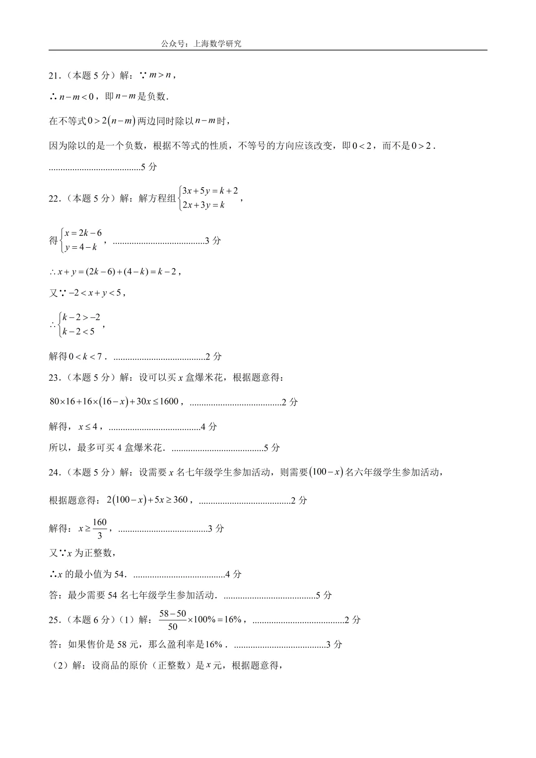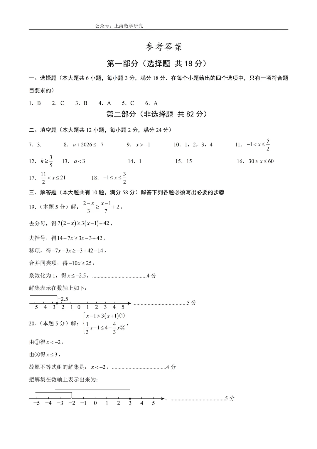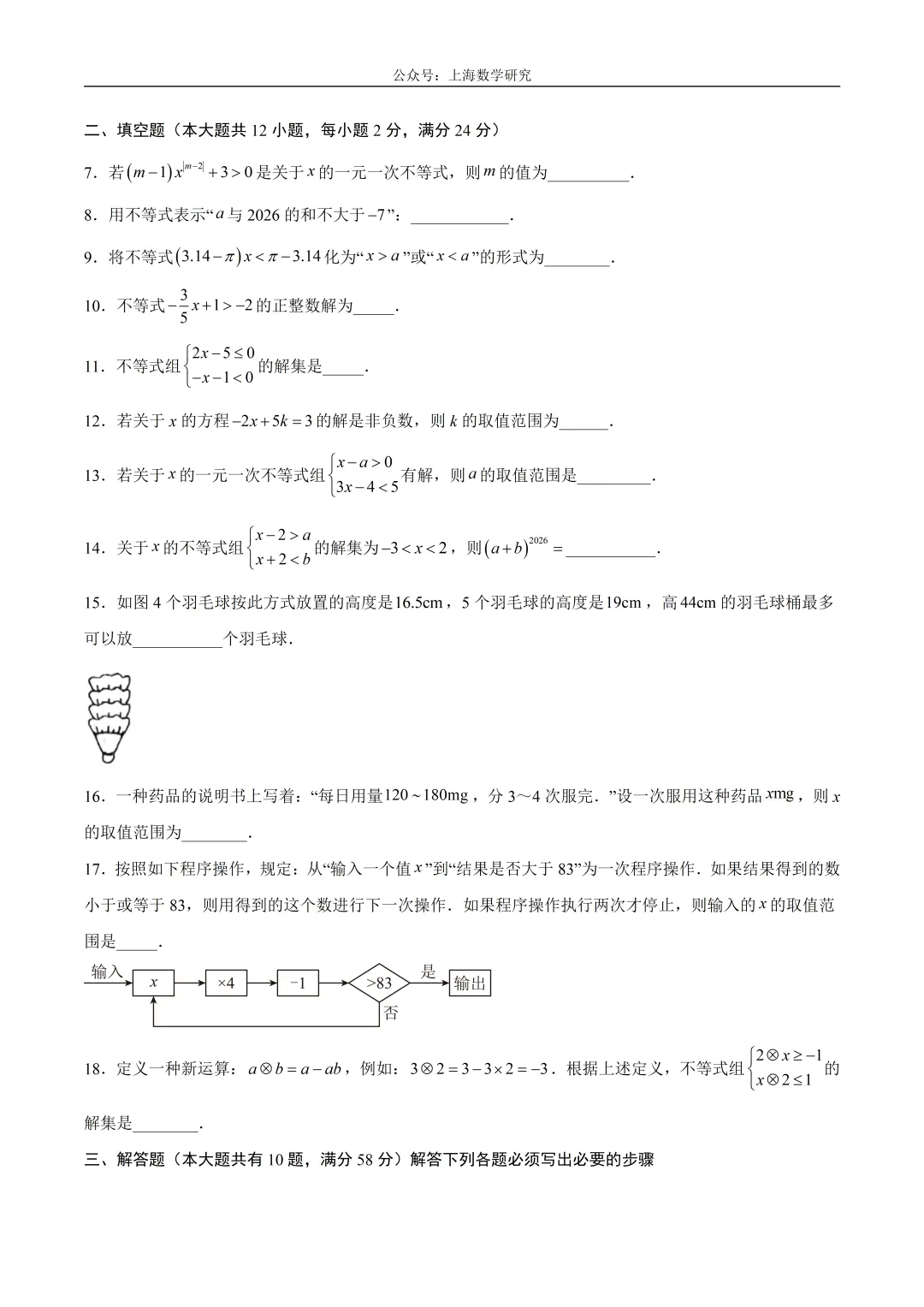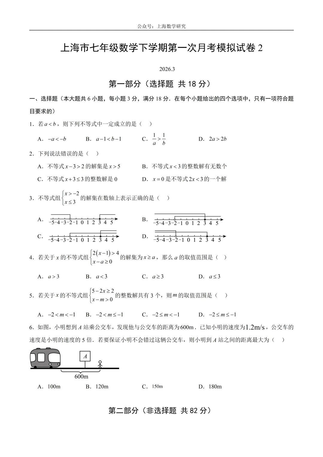 >上海市七年级数学下学期第一次月考模拟试卷2及答案(2026.3)