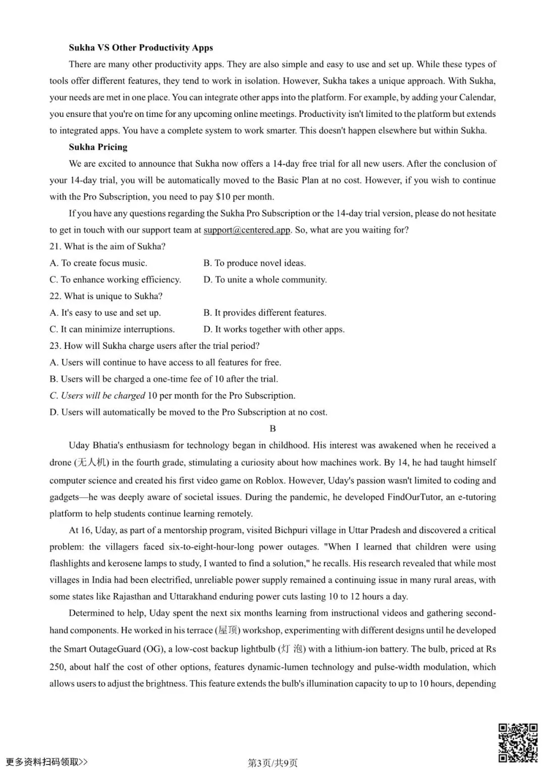 注:文末附该试卷和答案下载方式,更多试卷持续分享~