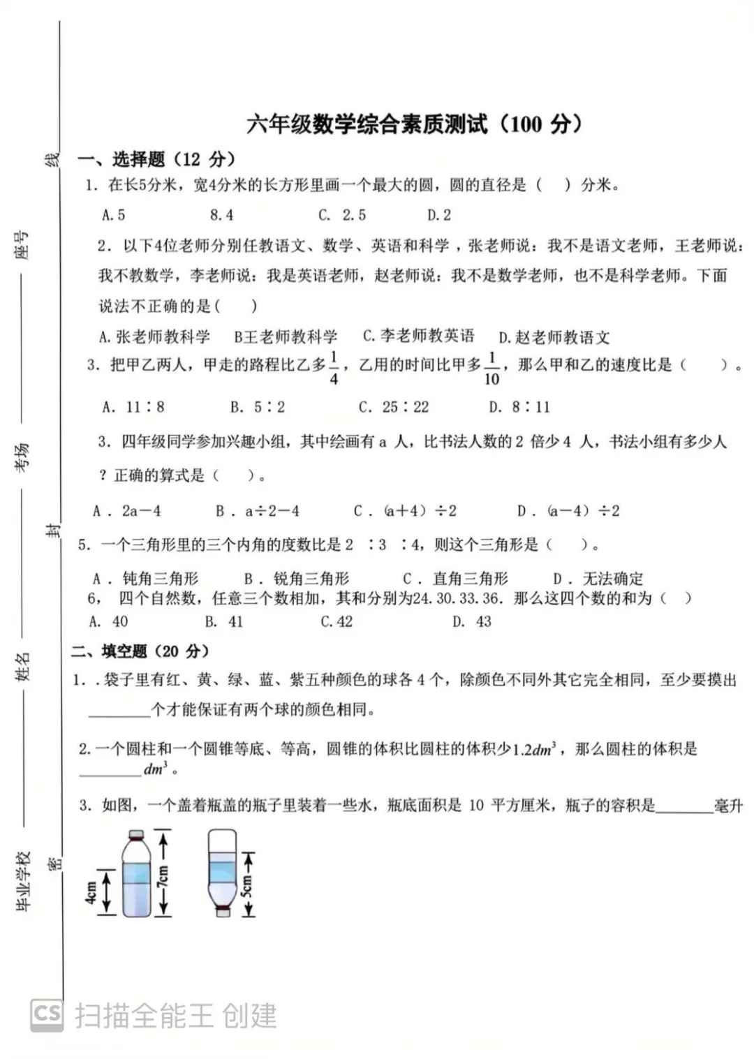>26届小升初金水热门数学试卷
