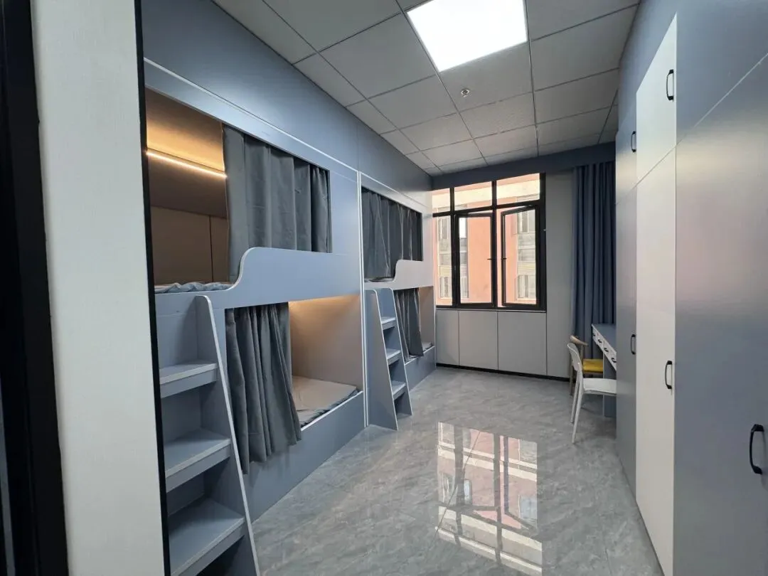 星级宿舍,4人间独立卫浴,配备空调、洗衣机、打造舒适安静休息空间。床桌分离+超大储物空间,干湿分离双洗手台,24小时恒温热水。密码锁智能安防,专职辅导员巡寝。星级配置+安心保障,助力学子专注追梦。