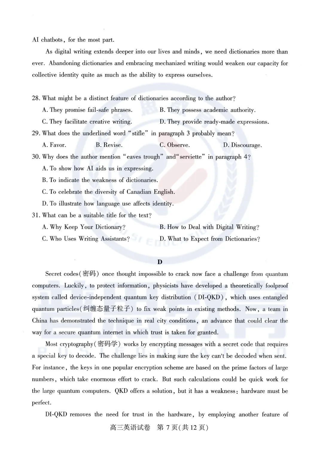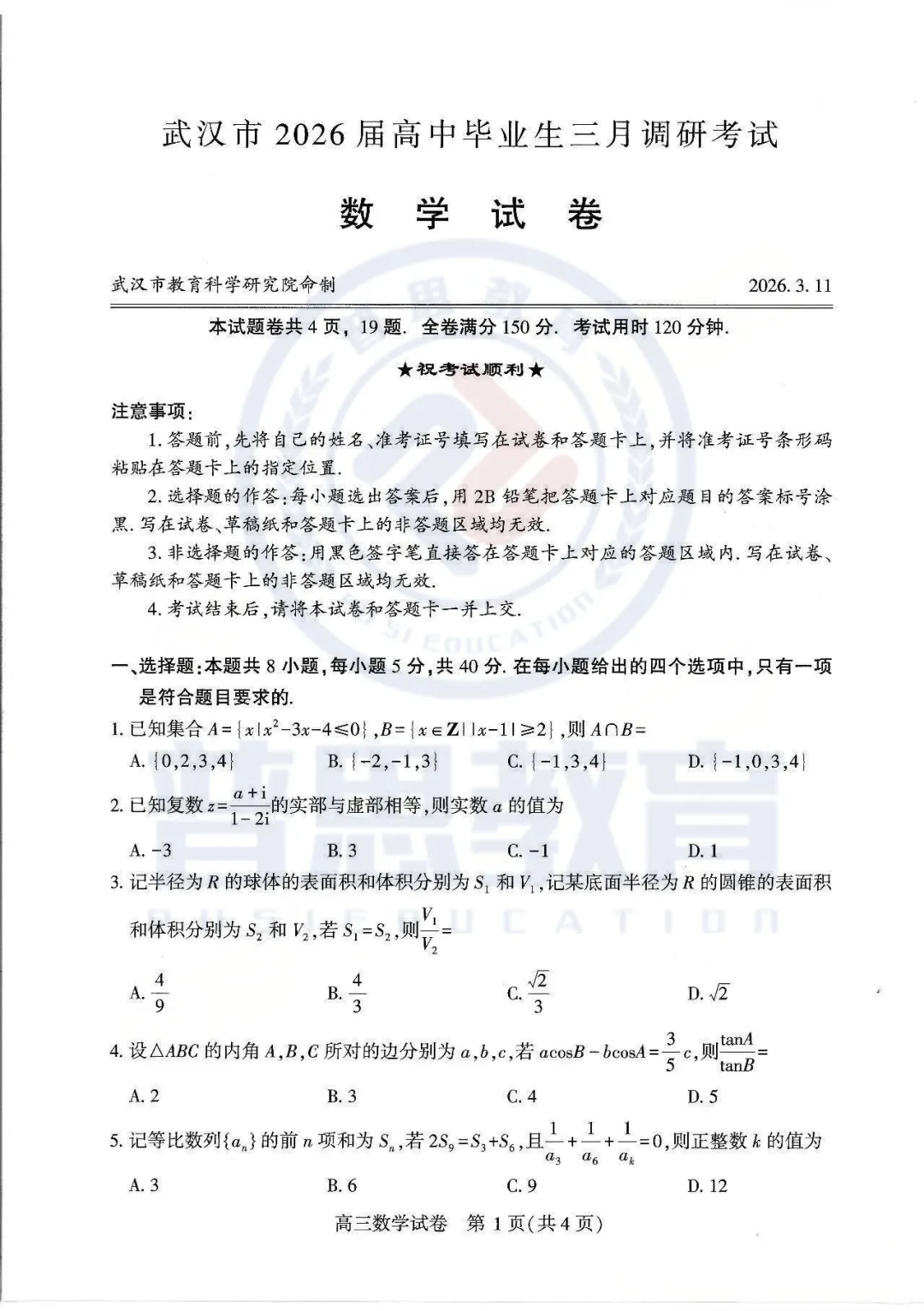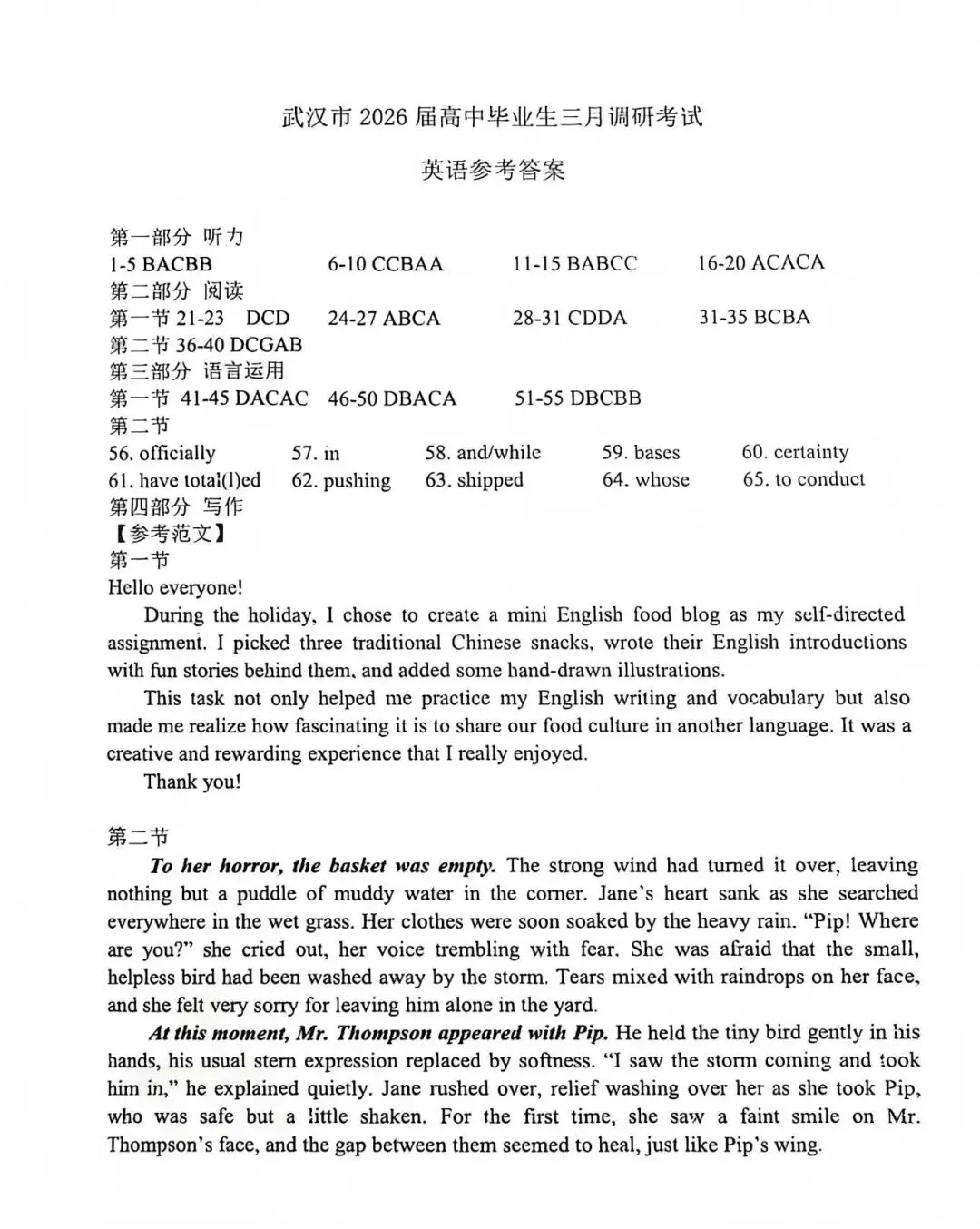 武汉市三月调考(武汉二调)全部科目试卷及答案已全部收集整理完毕!本次考试由武汉市教育科学研究院命题,质量精良、贴合高考,对后期复习极具参考价值。
