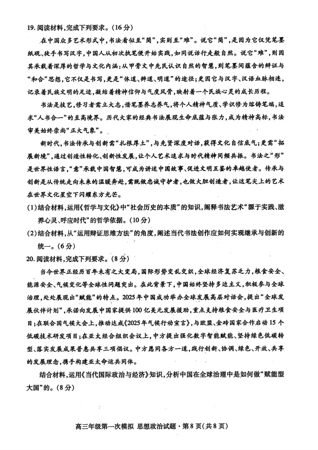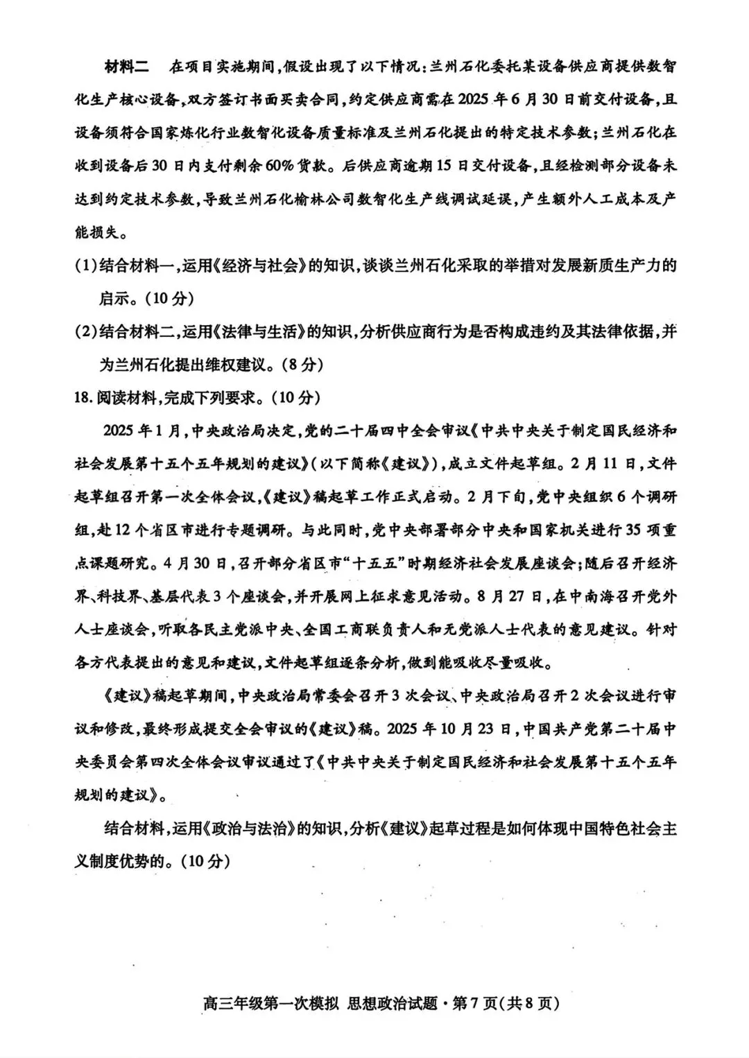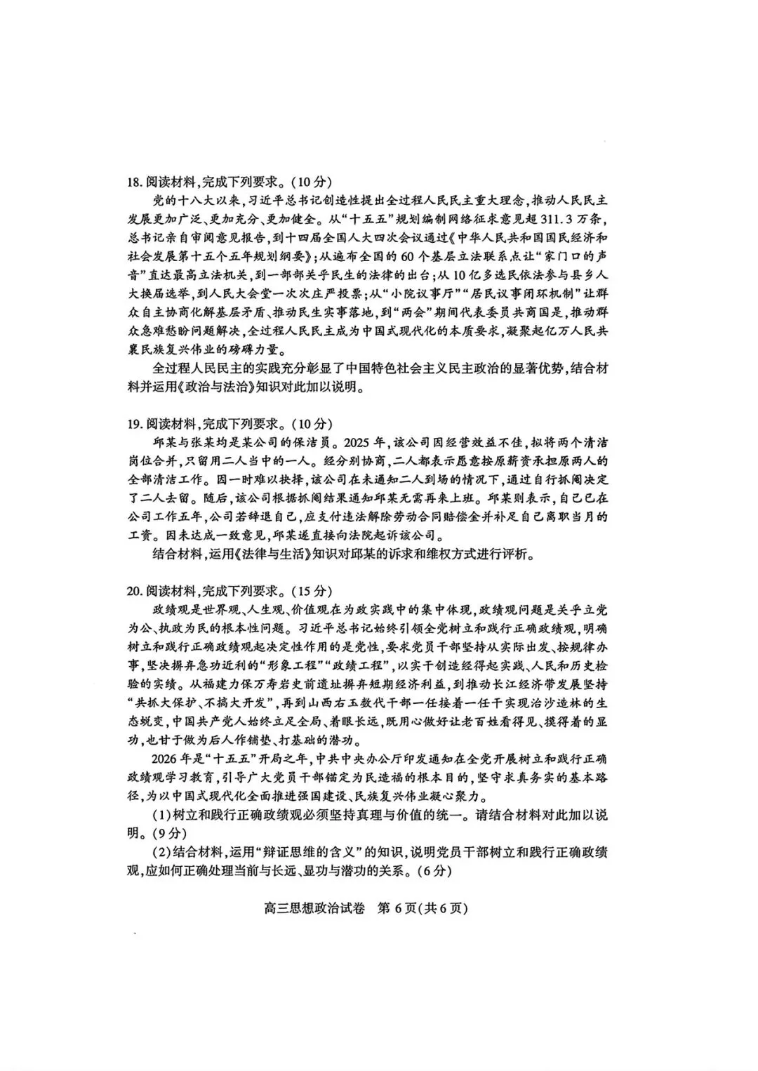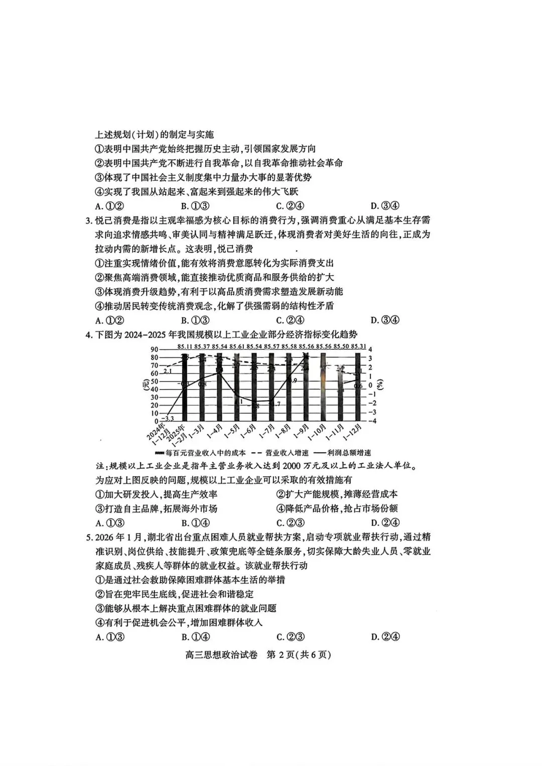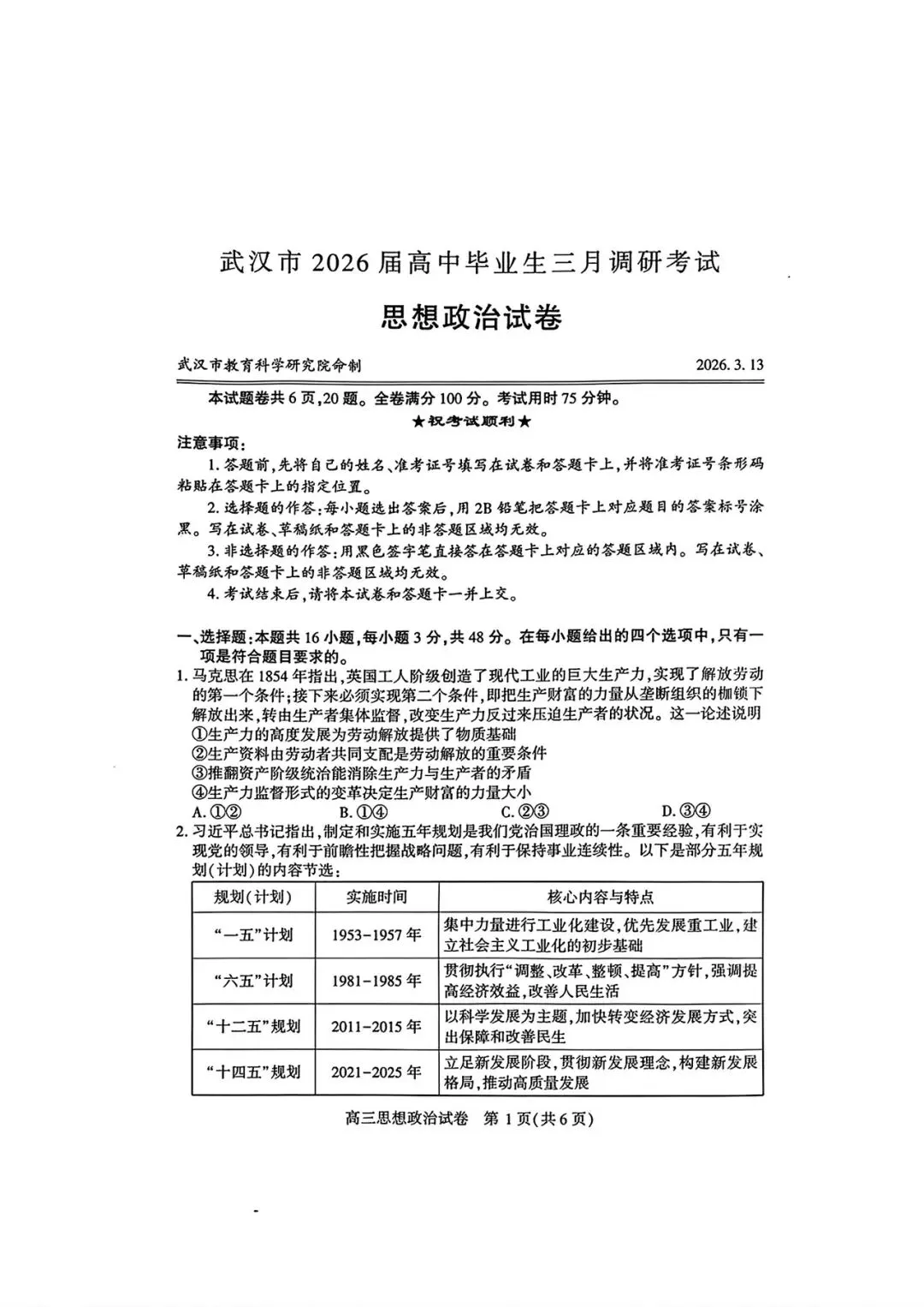 >【政治试卷|新题速递】甘肃一诊+武汉3月调研