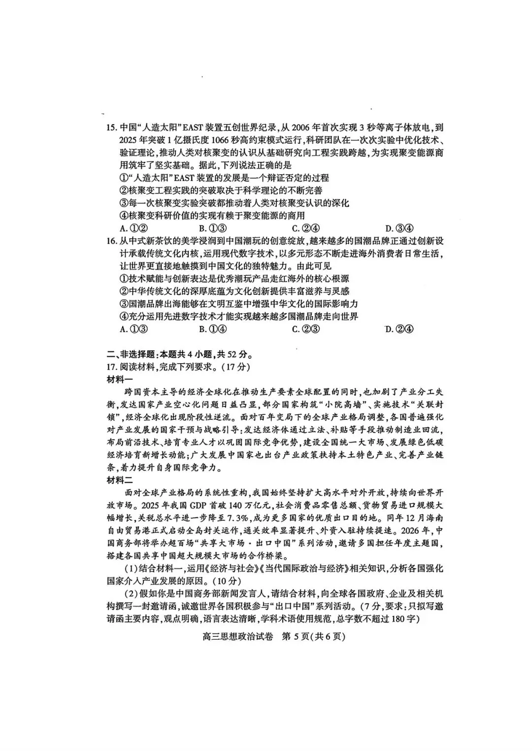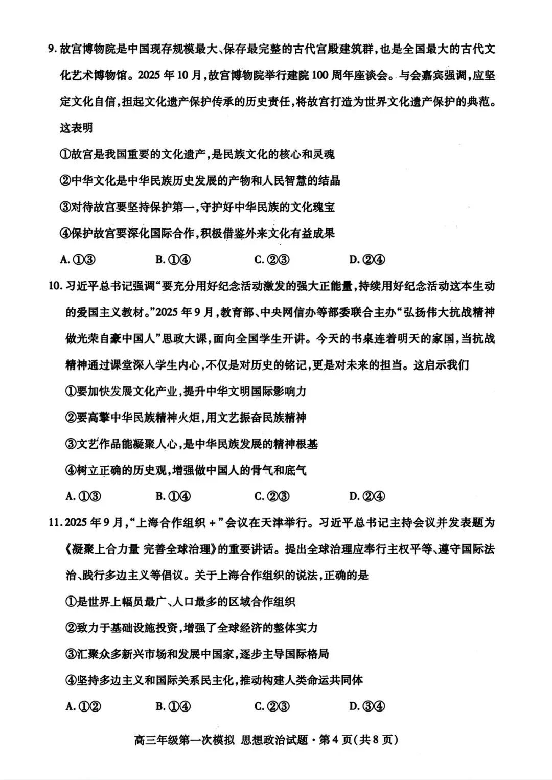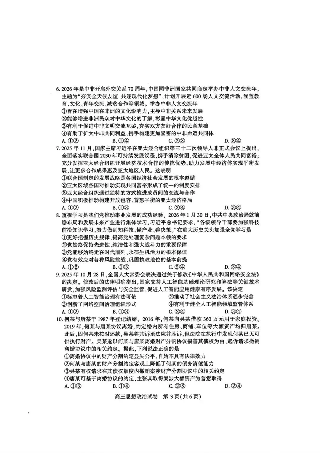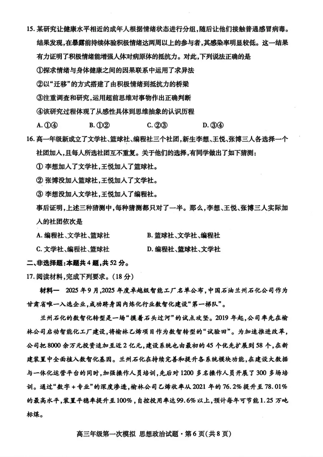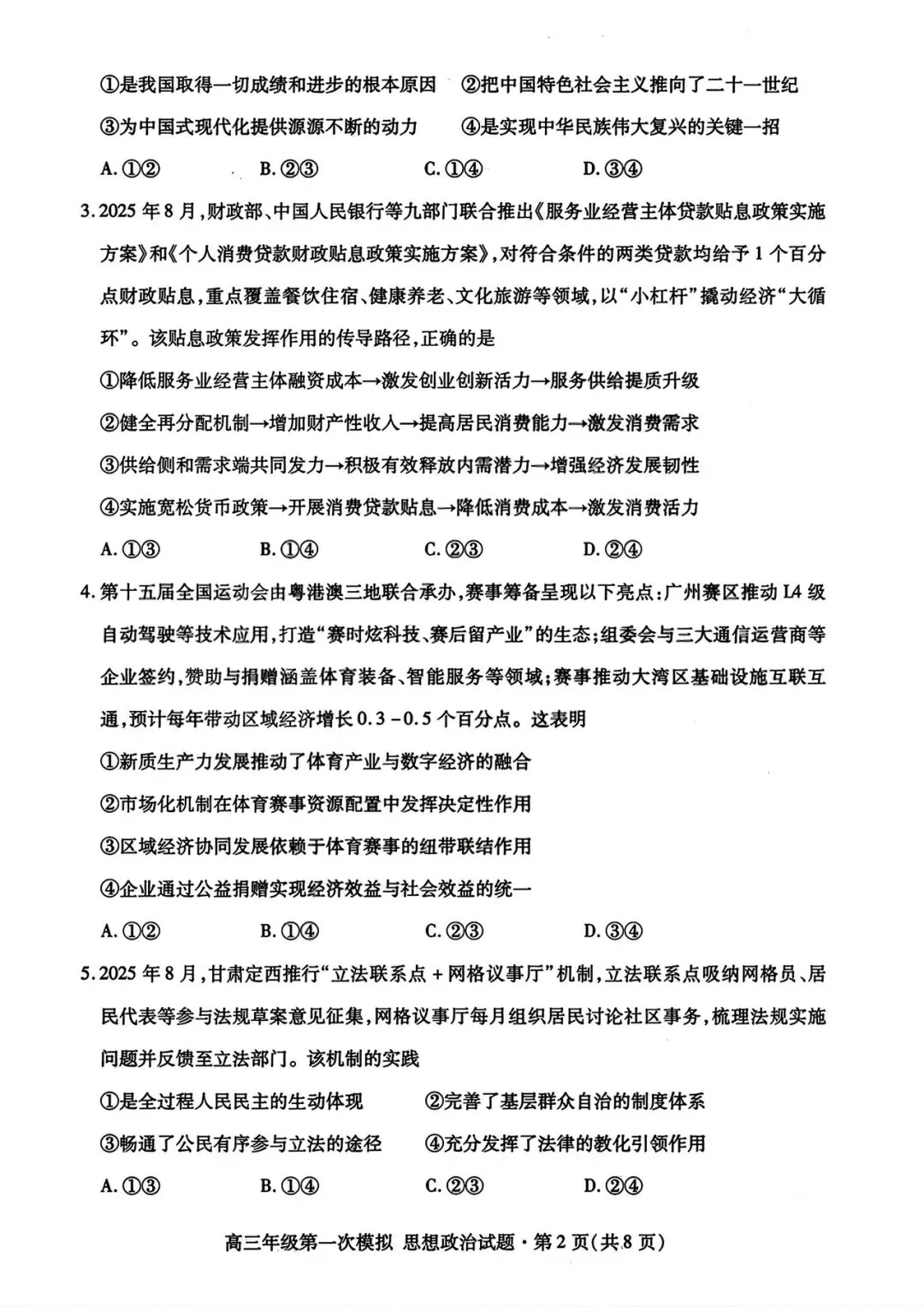 >【政治试卷|新题速递】甘肃一诊+武汉3月调研