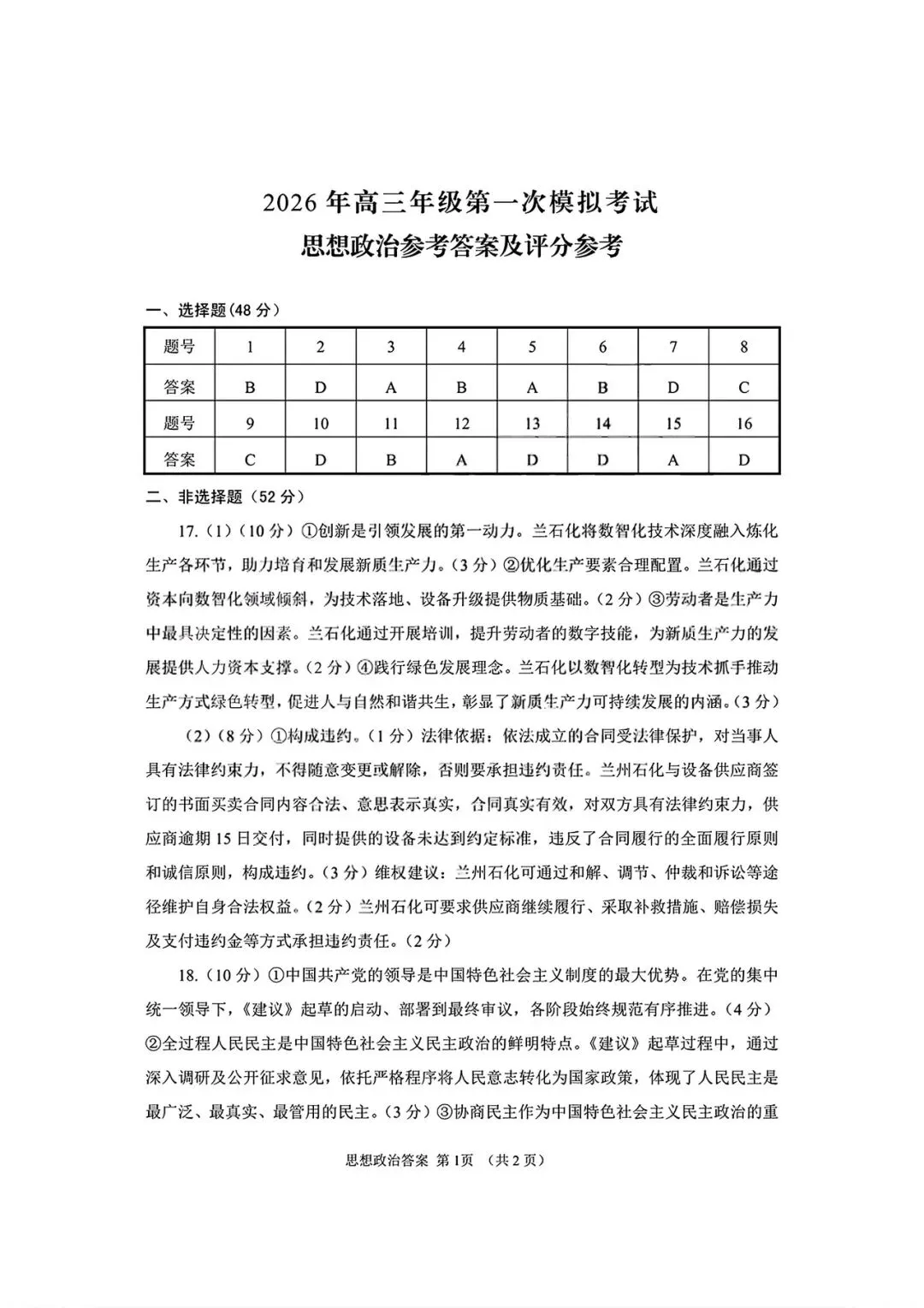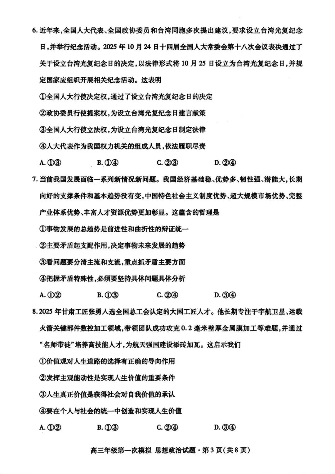 【政治试卷|新题速递】甘肃一诊+武汉3月调研