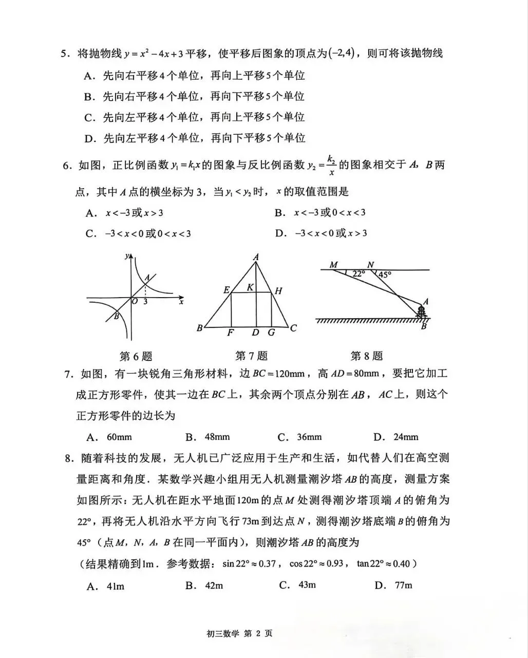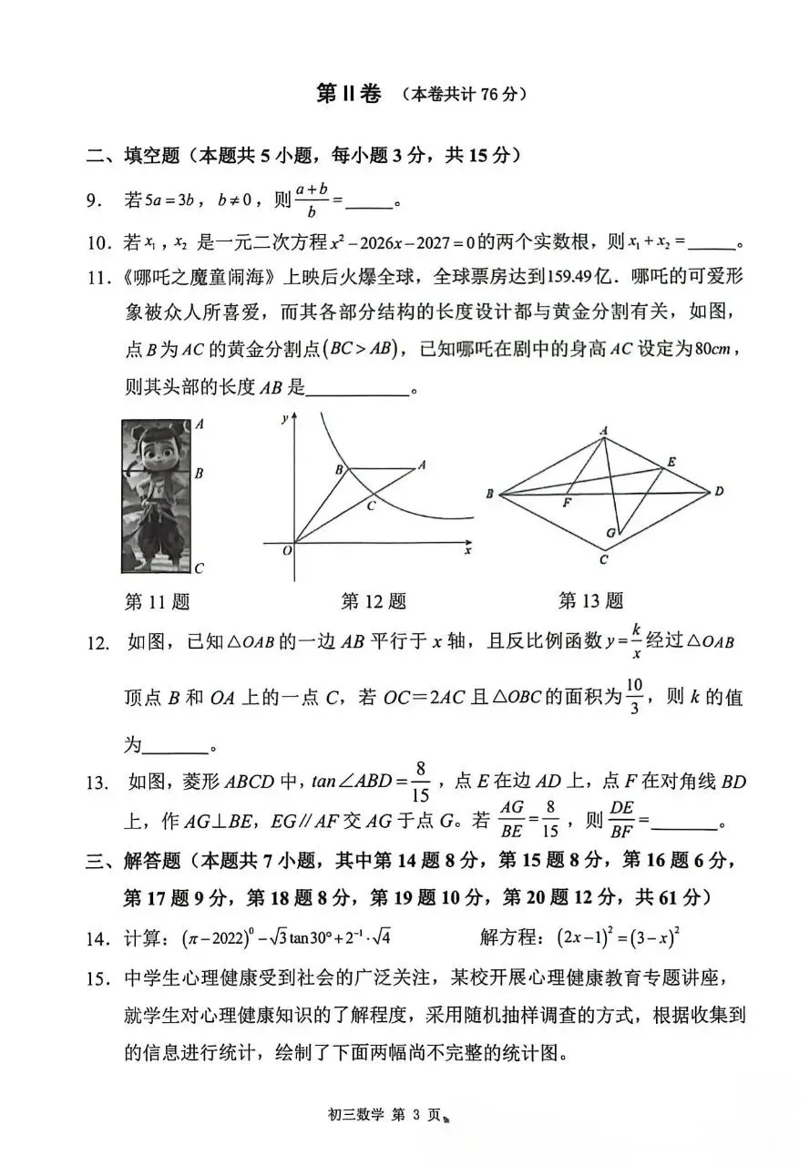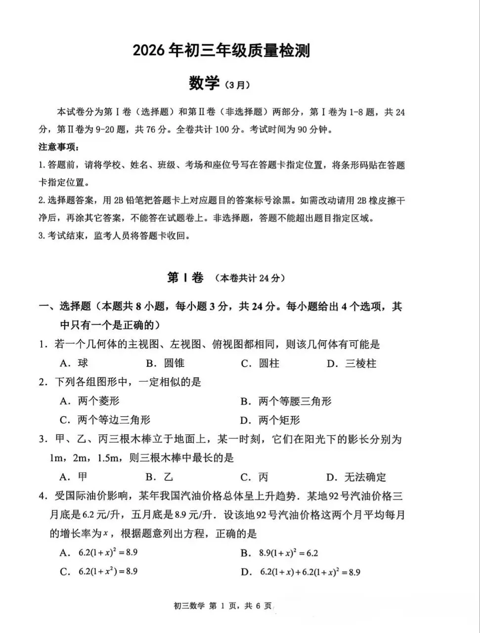 >2026年3月份34校联考九年级数学试卷(含答案)