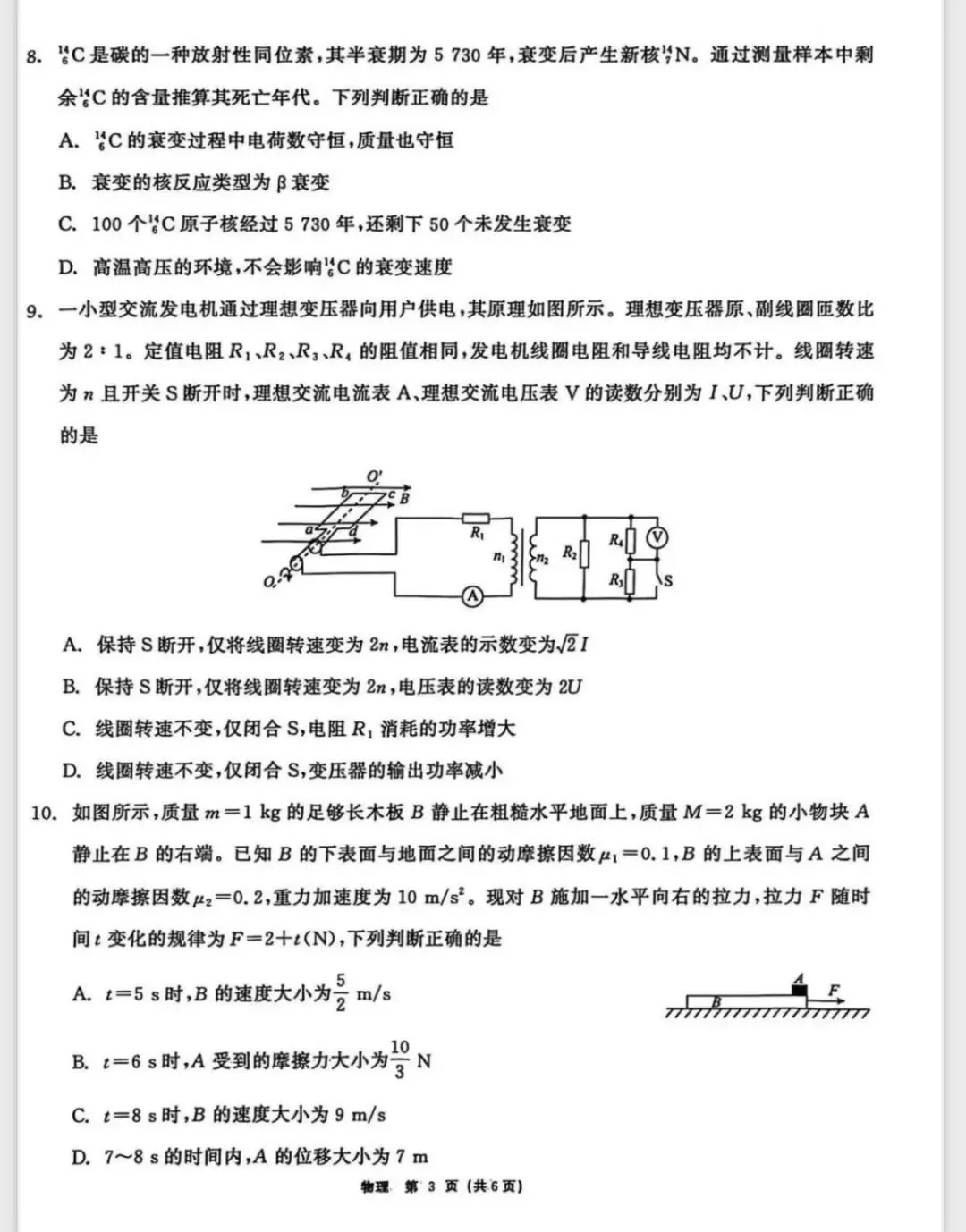 2026年3月13日健哥粉丝群(物理群+数学群)分享试卷如下: