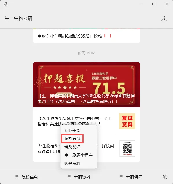 最后,线下复试有很多细节要注意。生一最近也推出了很多有关复试干货的推文,大家可以进入公众号后台菜单-考研资料-调剂复试中进行查看哦!