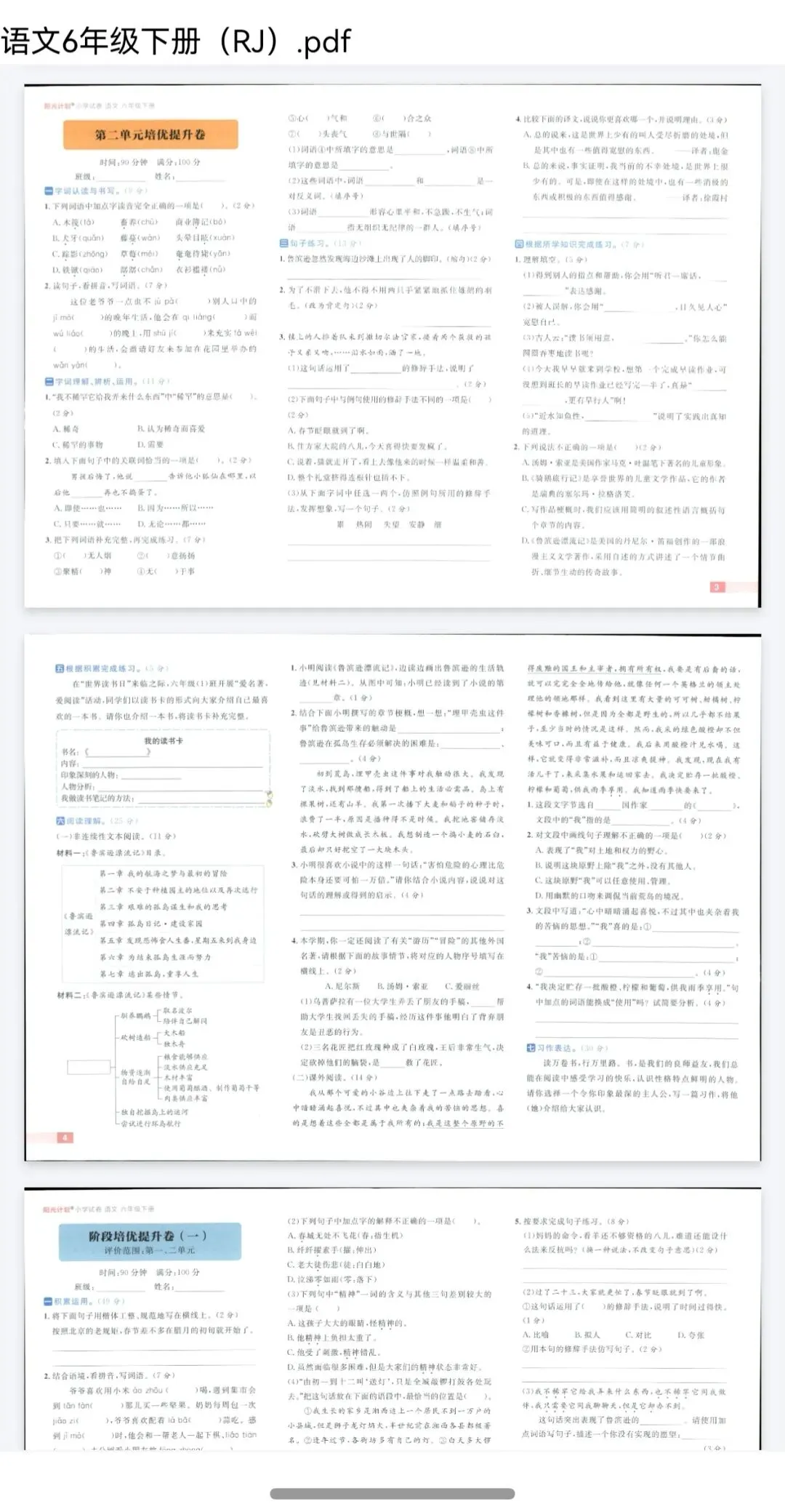 阳光计划小学试卷人教版语文2-6年级下册,链接:https://pan.quark.cn/s/f04555ed8d97