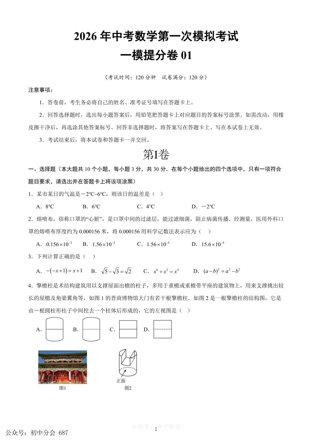2026年中考数学第一次模拟试卷2套,含解析