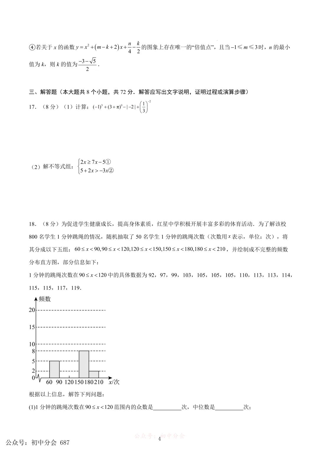 2026.3河北初中学业水平模拟数学摸底一