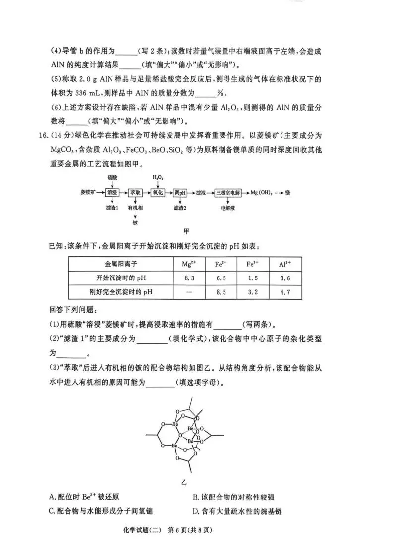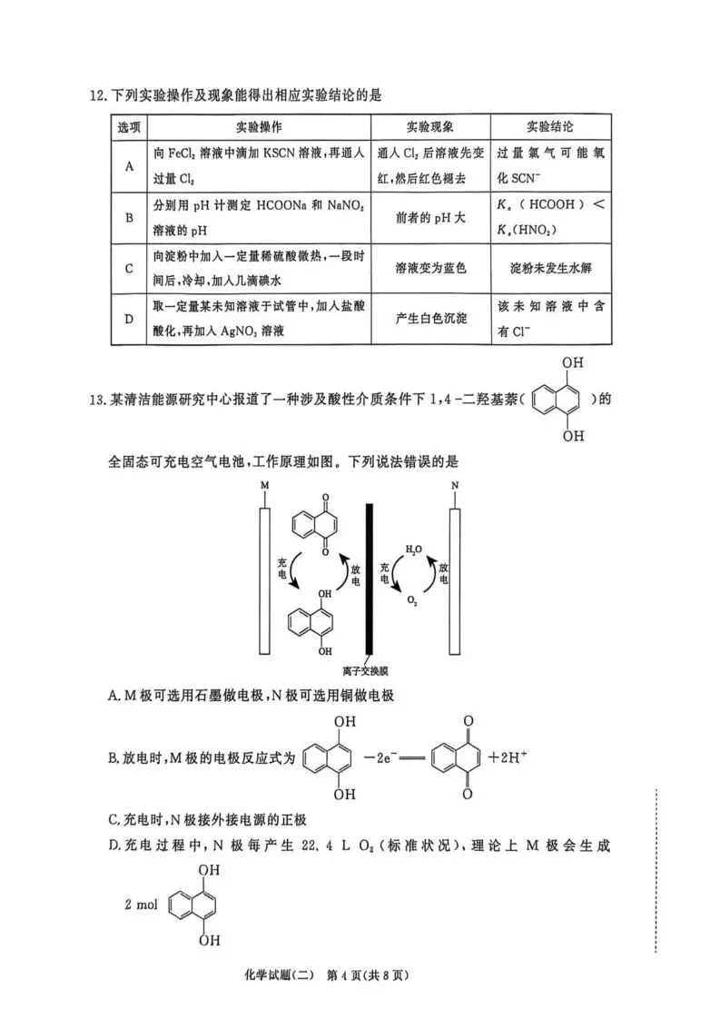 【高一、高二、高三最新月考试卷】河南青桐鸣2026届高三下学期学情调研(二)化学+答案