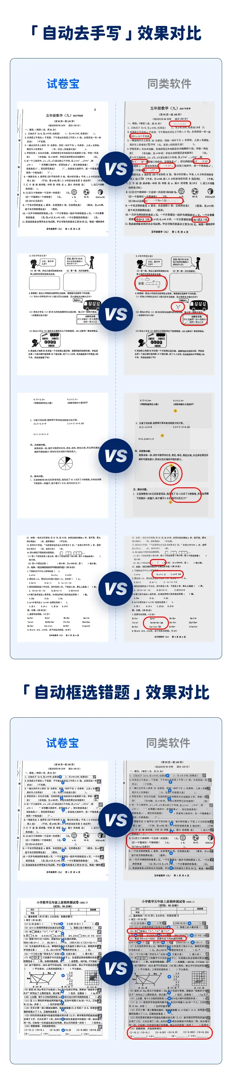 1、核心的功能是把凌乱的、写过的卷子变成空白卷子,可以把糟乱差的卷子,擦拭掉一切笔迹变成一张空白卷子。(抹除效果、试卷清晰度做到极致)