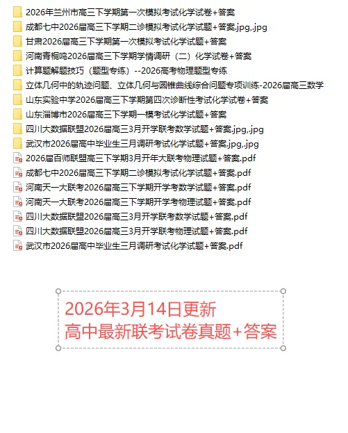 >【高一、高二、高三最新月考试卷】2026年3月14日更新