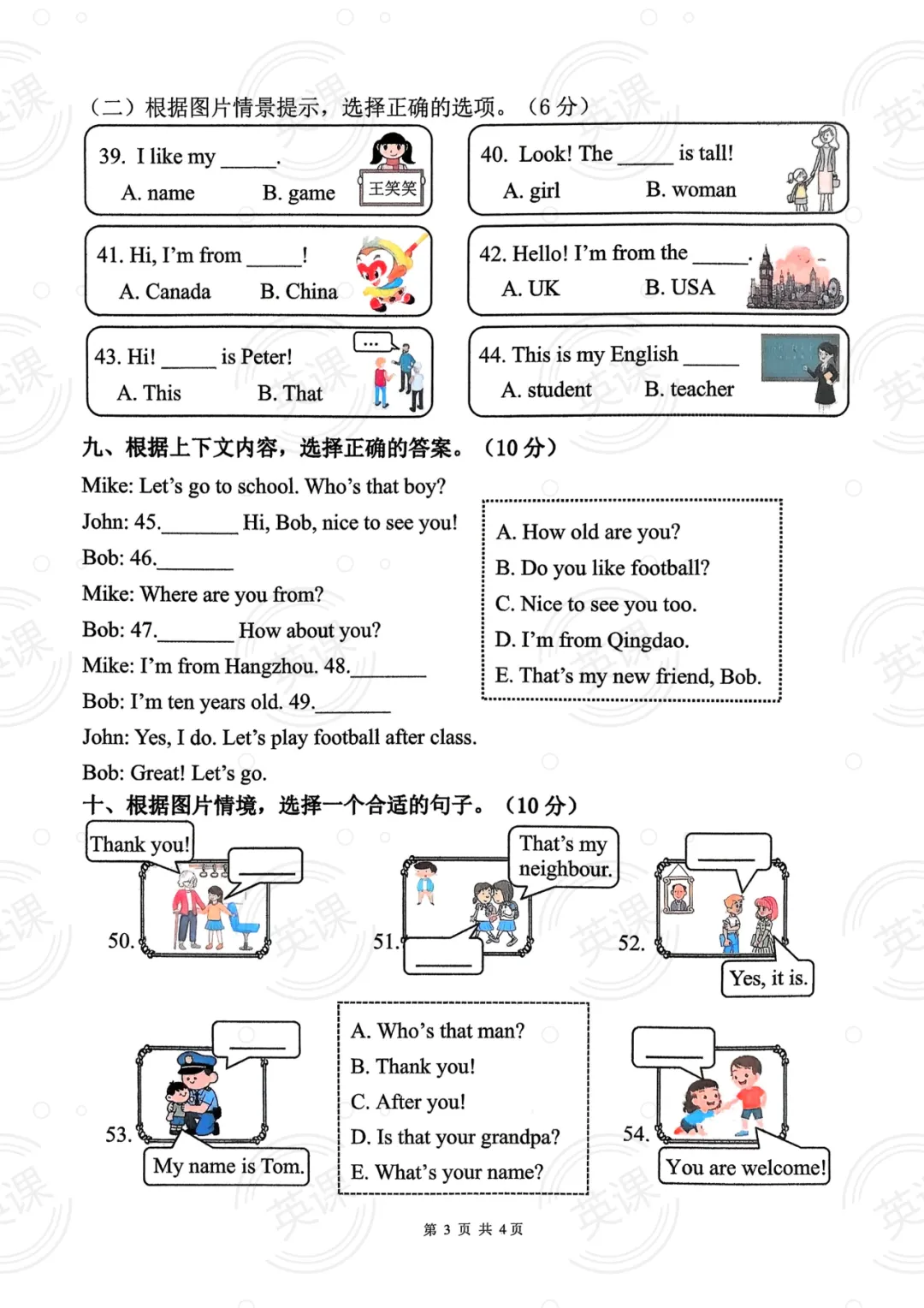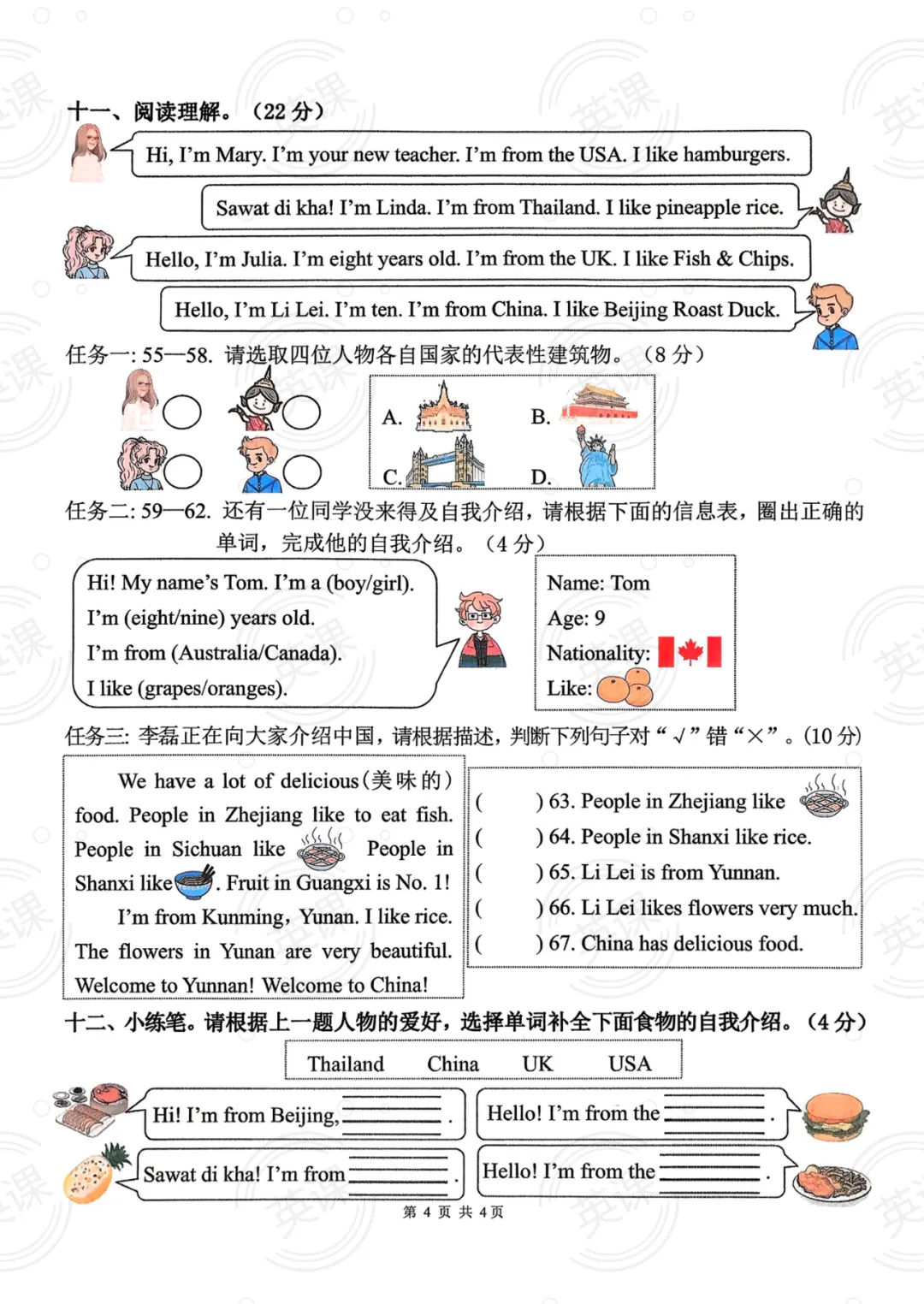 五年级下册语文情境试卷
