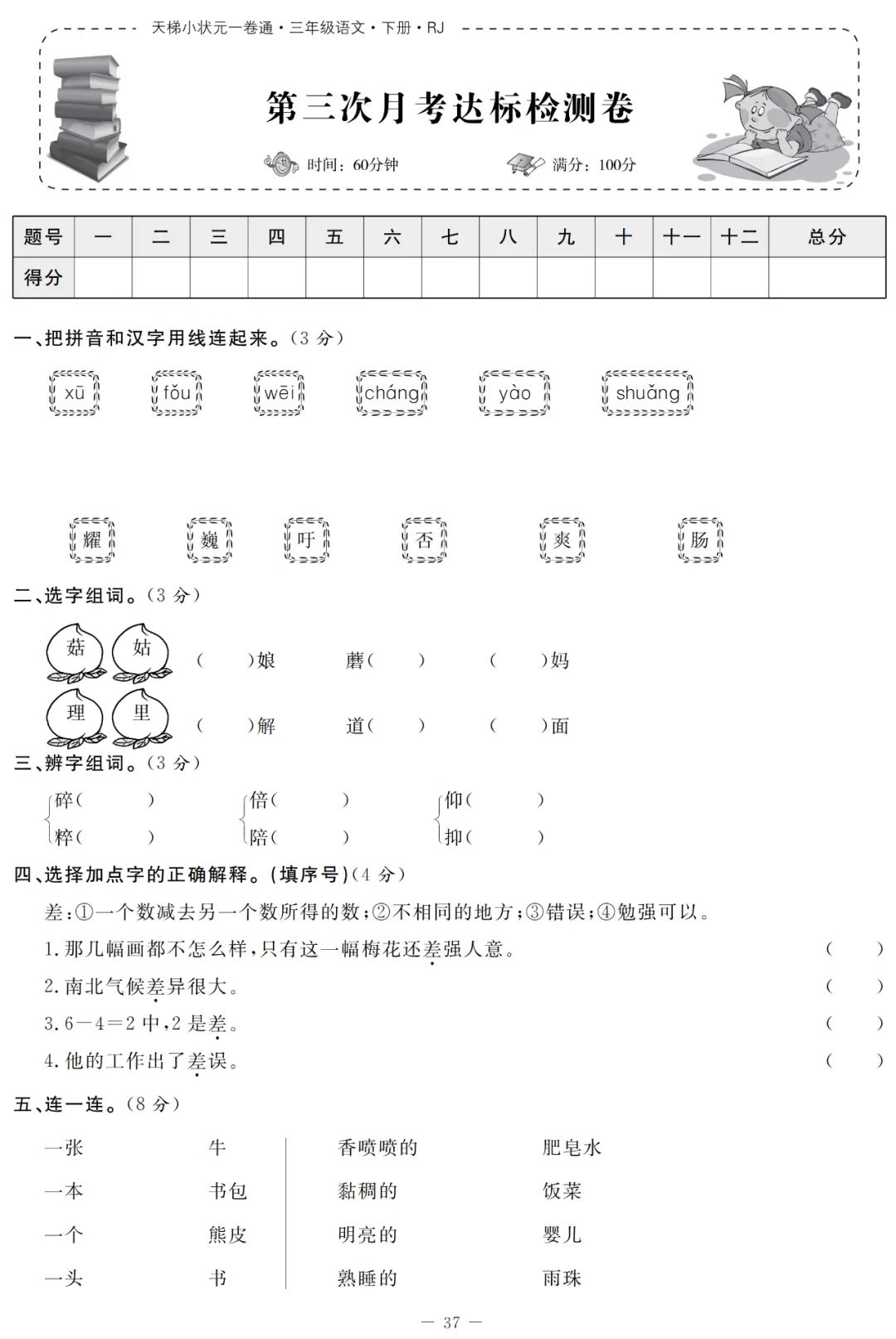 平凡教研团队给大家整理了统编版语文三年级(下)第三次月考试卷(第5-6单元)丨可打印,有需要的家长,可以打印给孩子在家学习!【建议老师转发到班级群】