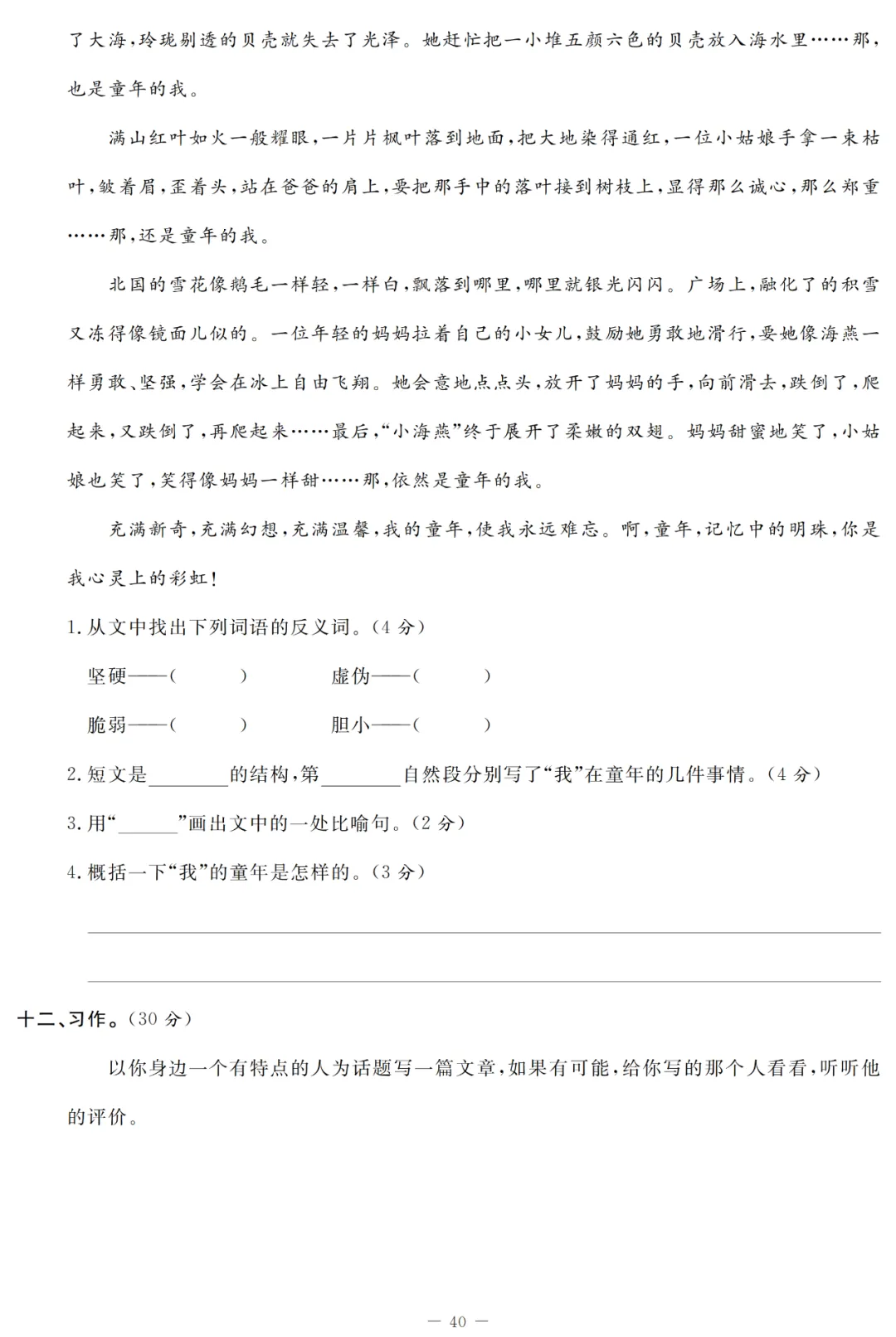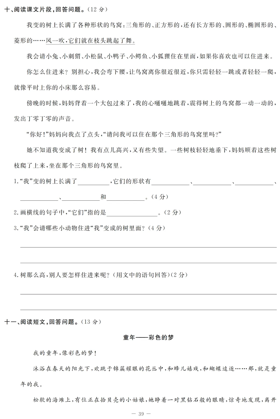 关注后发送消息“下册月考试卷3”