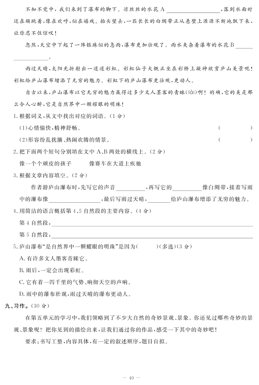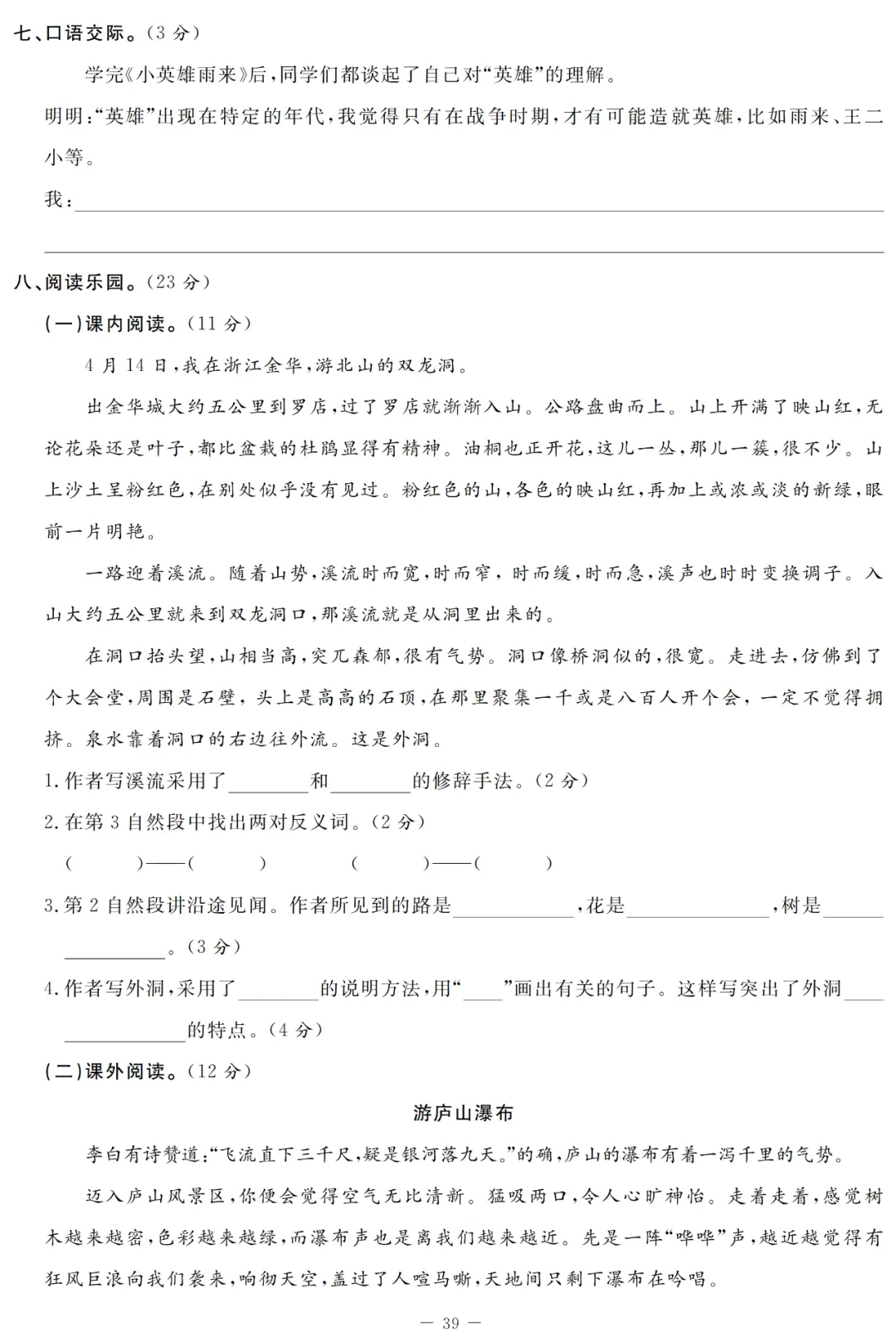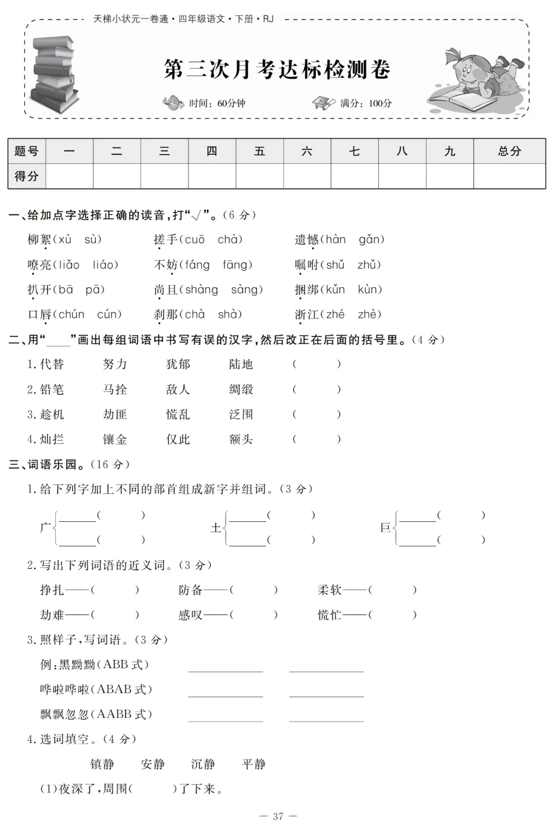 平凡教研团队给大家整理了统编版语文四年级(下)第三次月考试卷(第5-6单元)丨可打印,有需要的家长,可以打印给孩子在家学习!【建议老师转发到班级群】