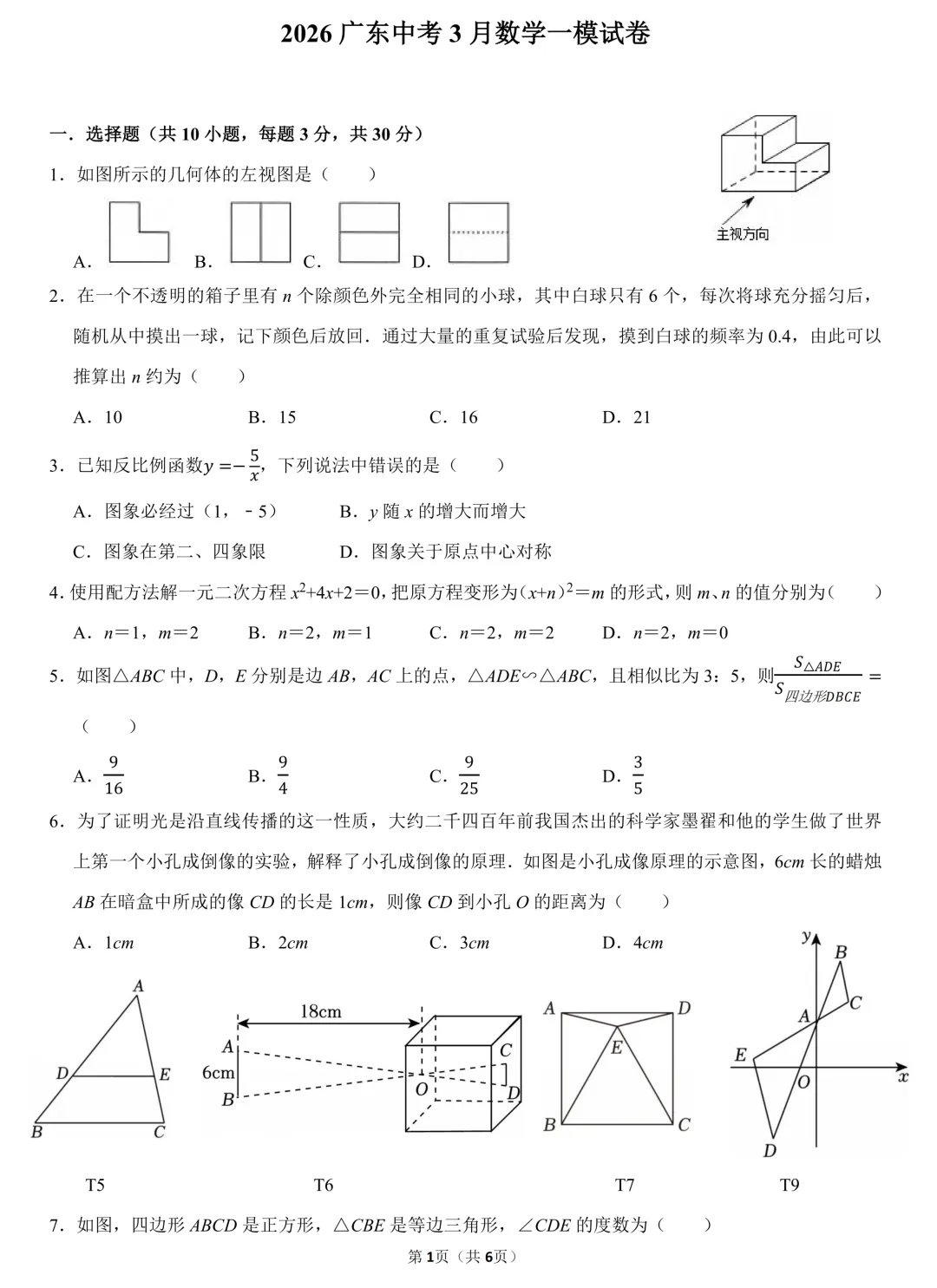 >2026广东中考3月数学一模试卷(含答案)