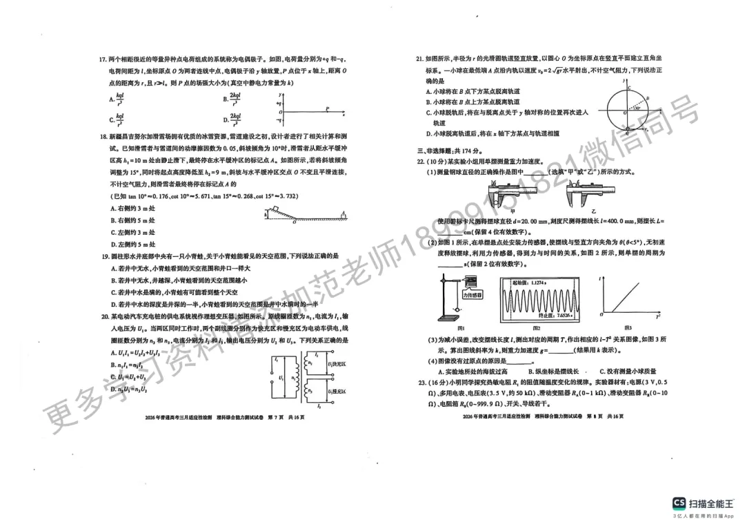 >2026年高考自治区二模理综试卷附答案解析