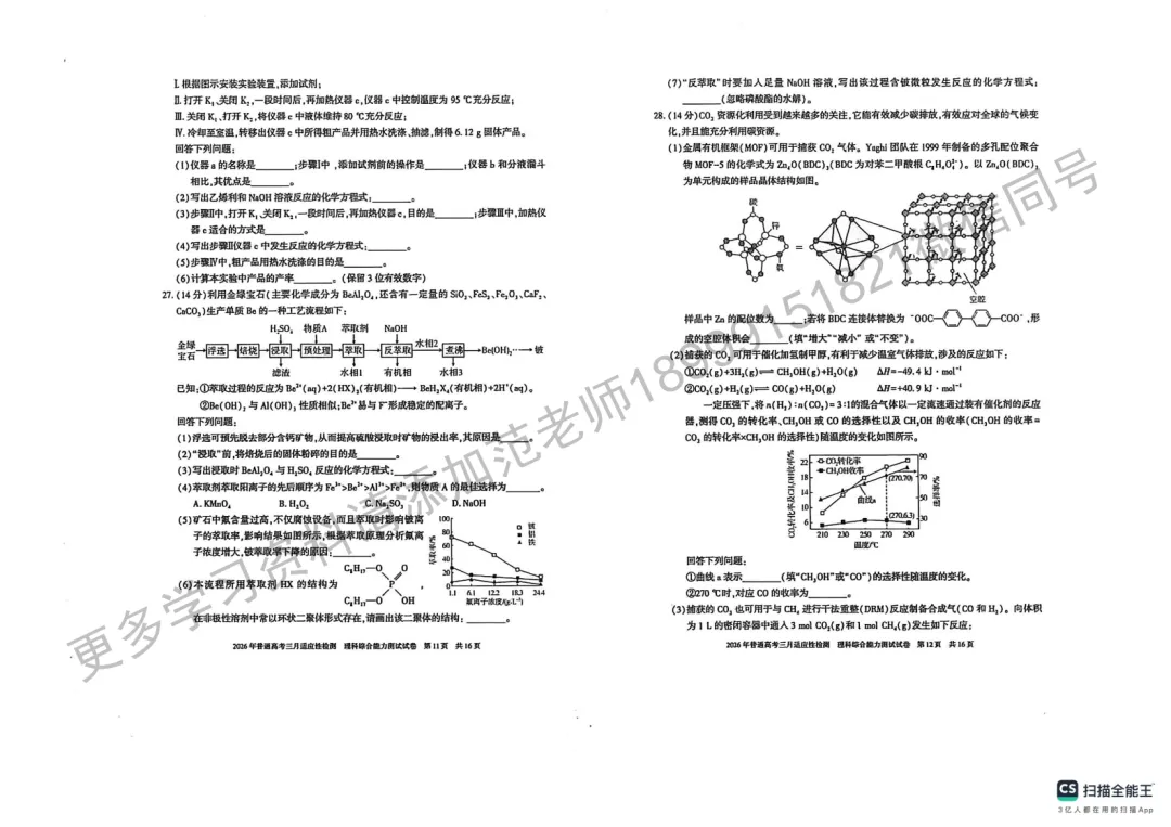 更新化学+地理!2026届泉州高三三检试卷及解析
