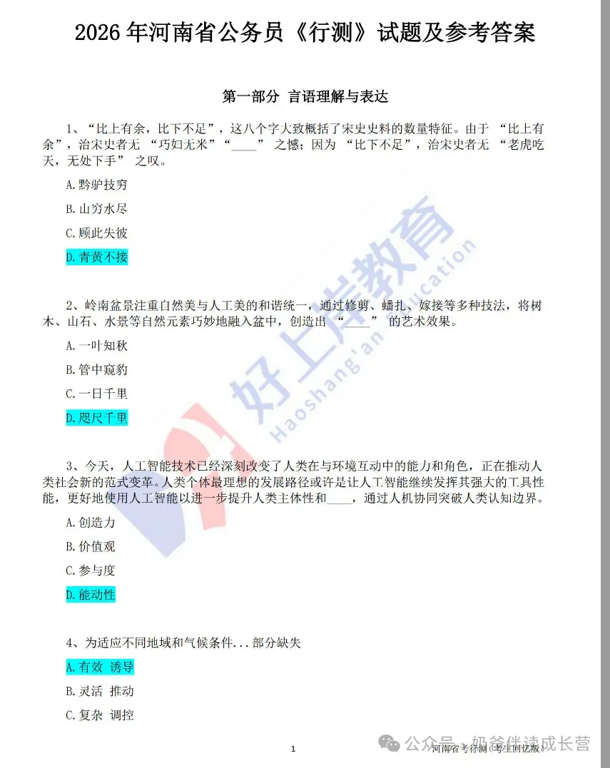 2026年省考《行测》真题试卷及参考答案(内蒙古)2026年省考《行测》真题试卷及参考答案(黑龙江)①:点一点右下角的“赞”和“在看”,感谢