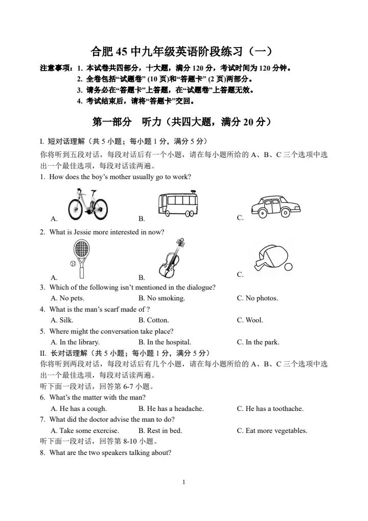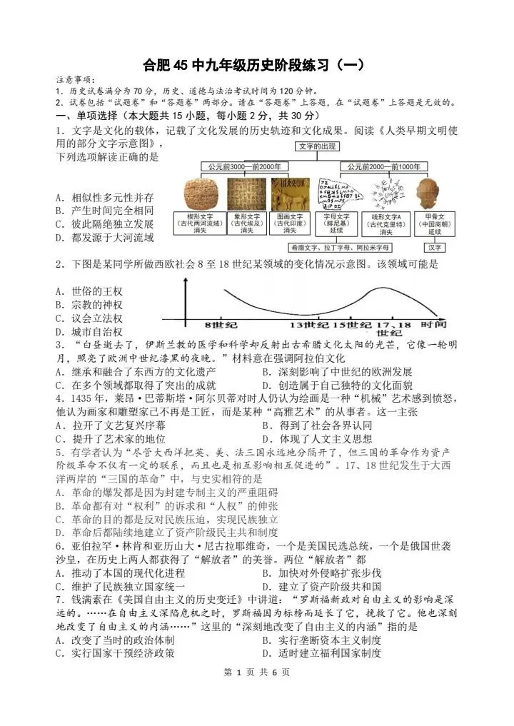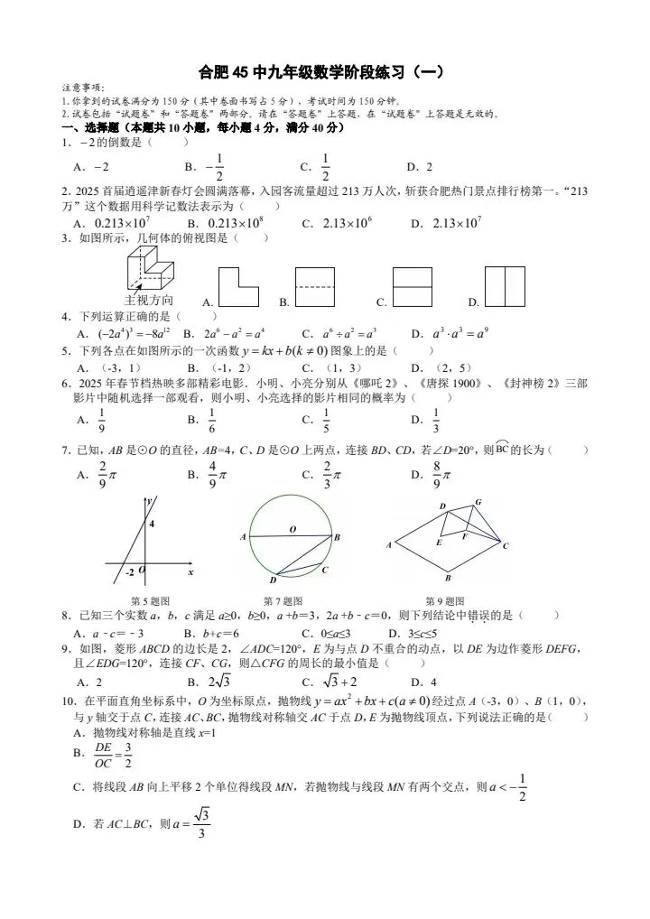 2.2024-2025学年安徽省合肥市庐阳区45中中考一模试卷