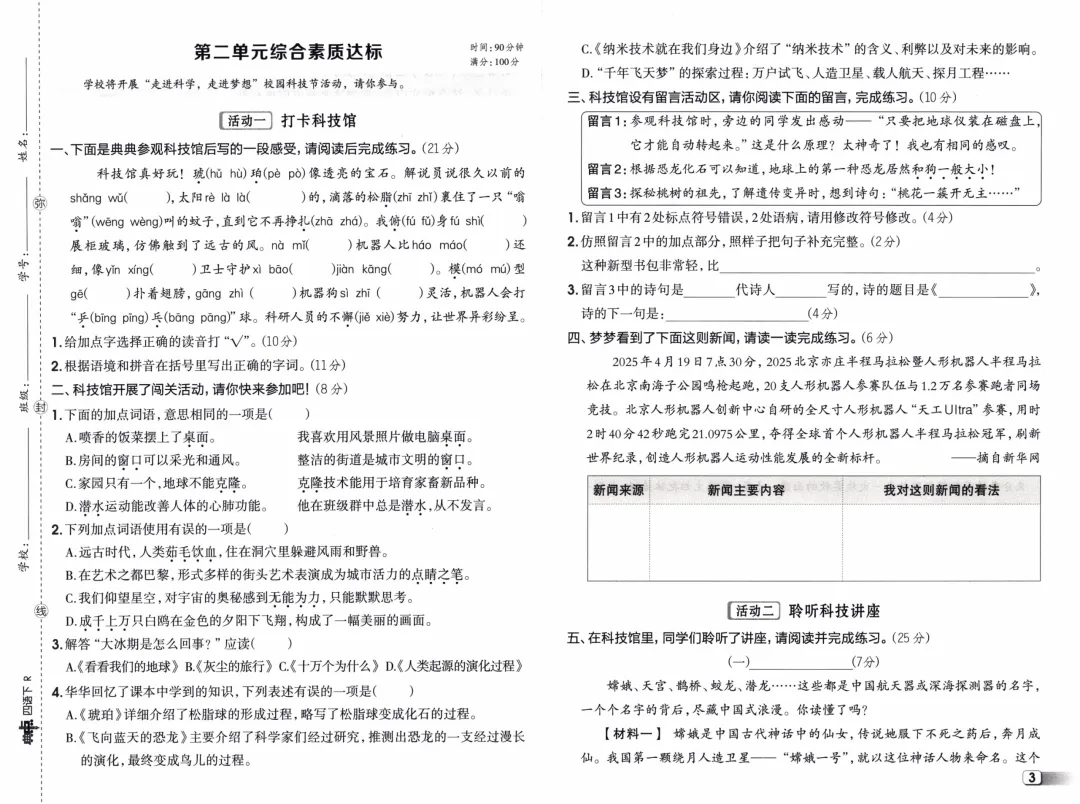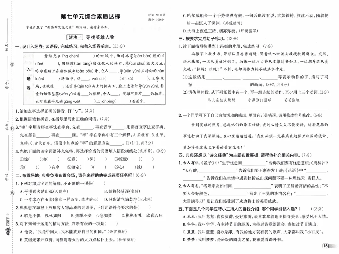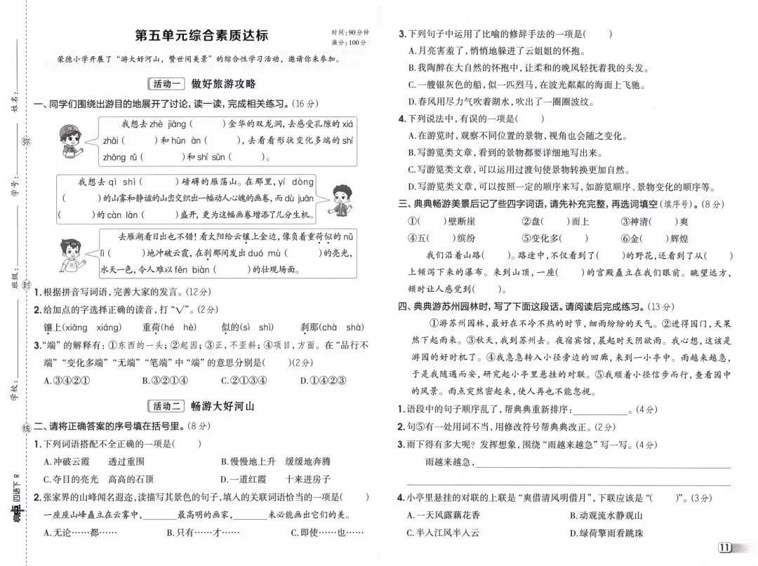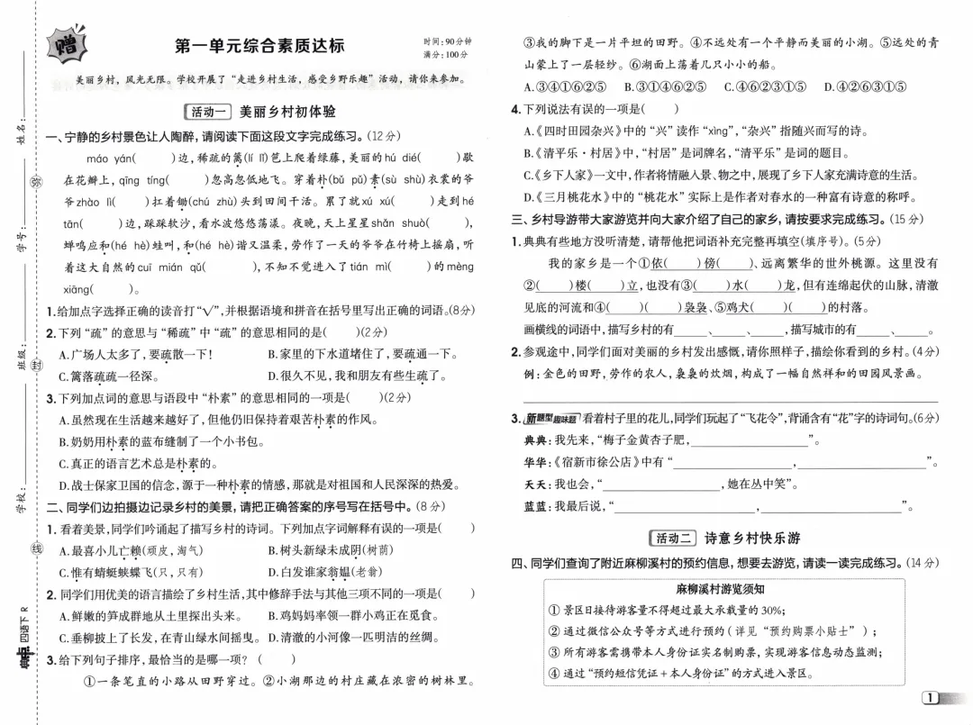 今天潼潼学习屋给大家分享:26春四年级下册语文典中点试卷(含答案)。是一套单元化、情境化、素养导向的同步测评试卷,题型丰富,全面对接四年级下册语文的学习重点与核心素养要求,夯实语文基础、提升综合能力。以下内容为部分截图,更详细的信息请查看完整PDF文件