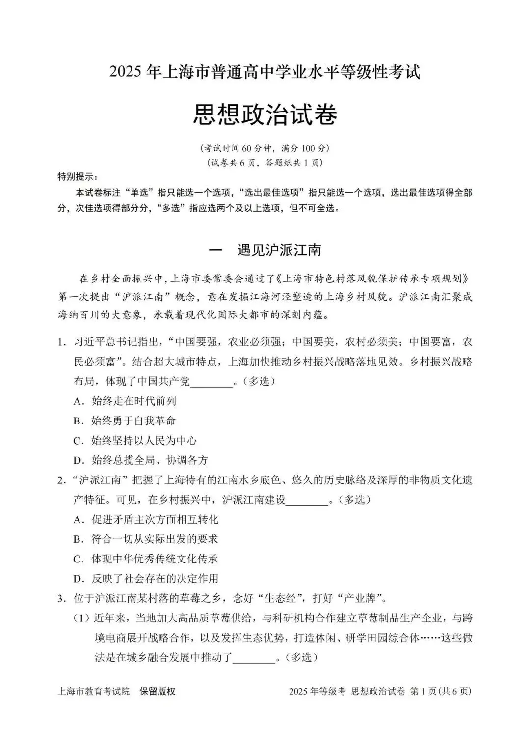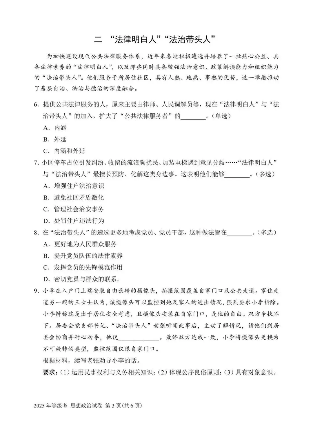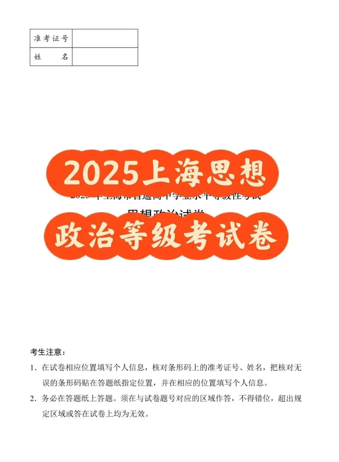 2025年上海思想政治等级考试卷(真题)