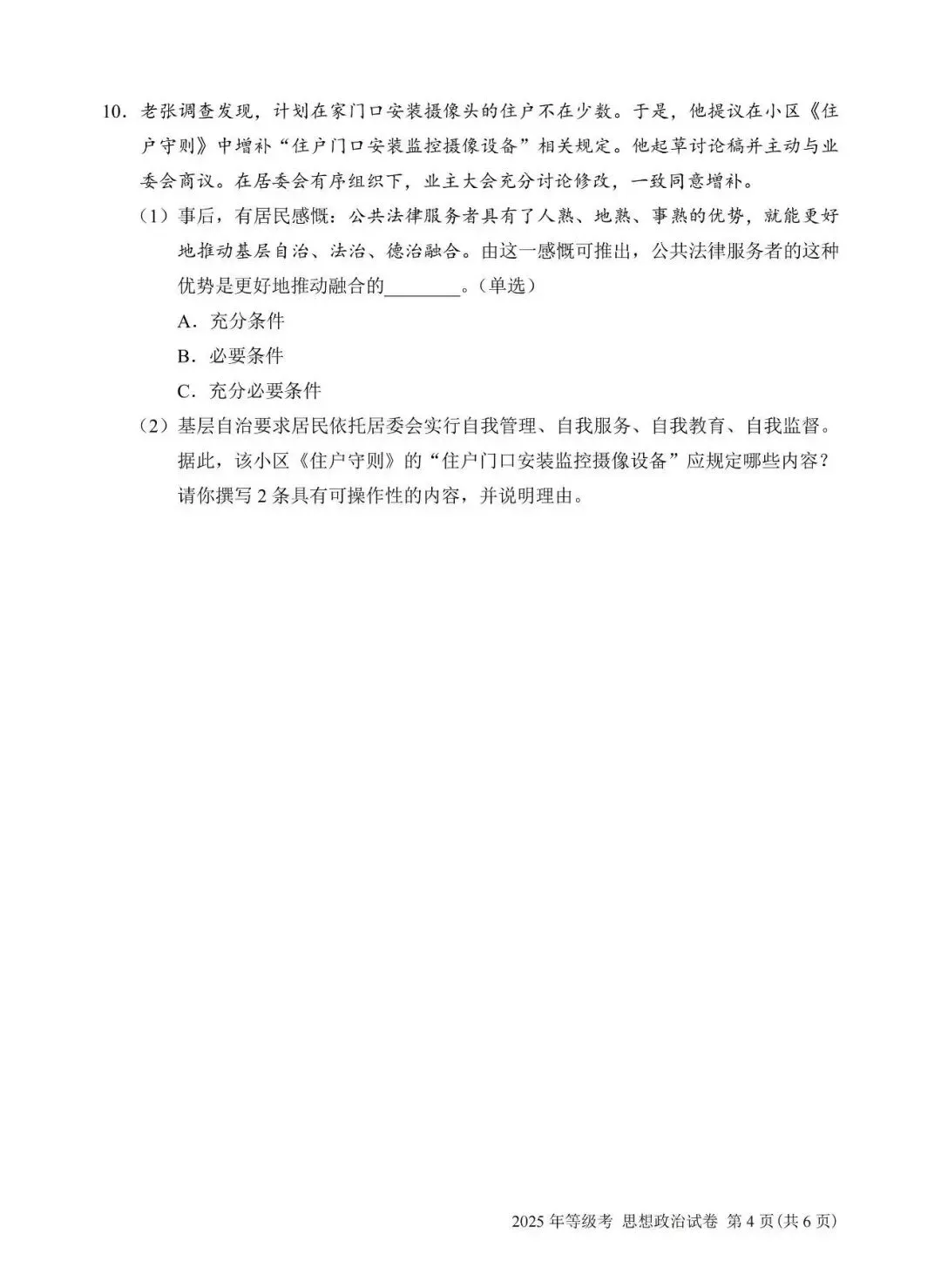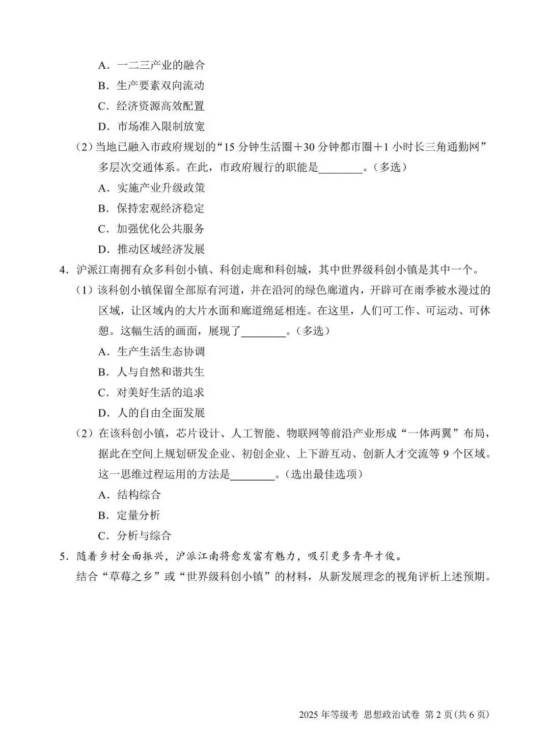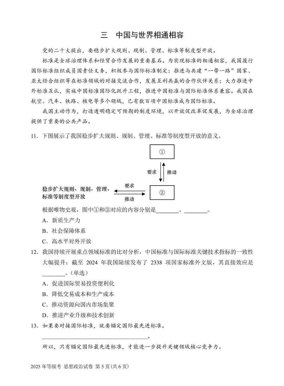 2025年上海思想政治等级考试卷(真题)