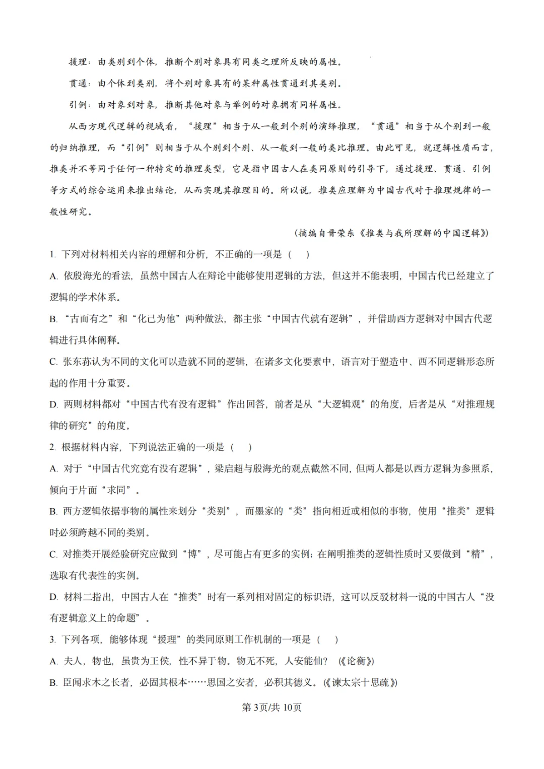 答案来了!2026年3月省考行测真题试卷和参考答案