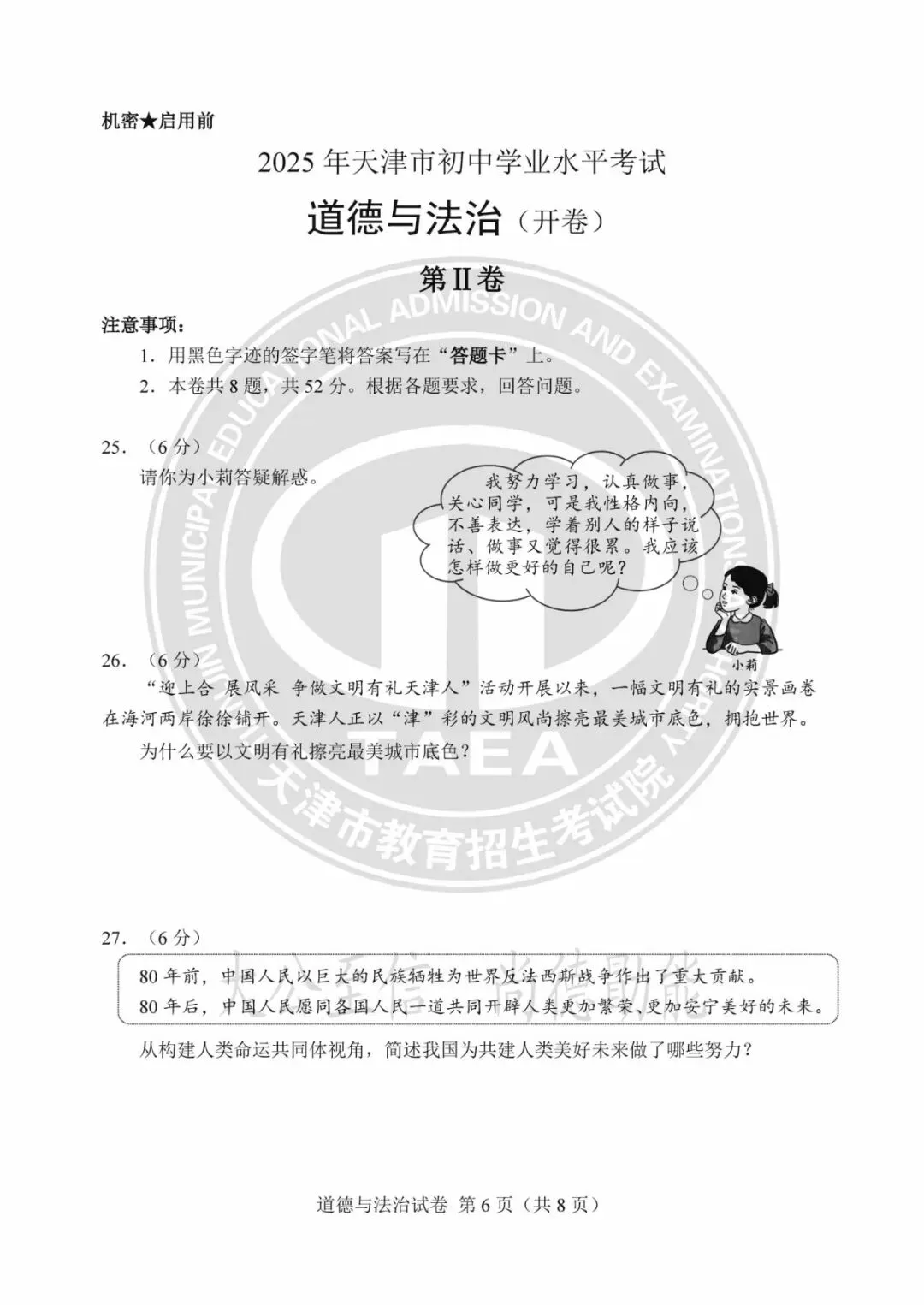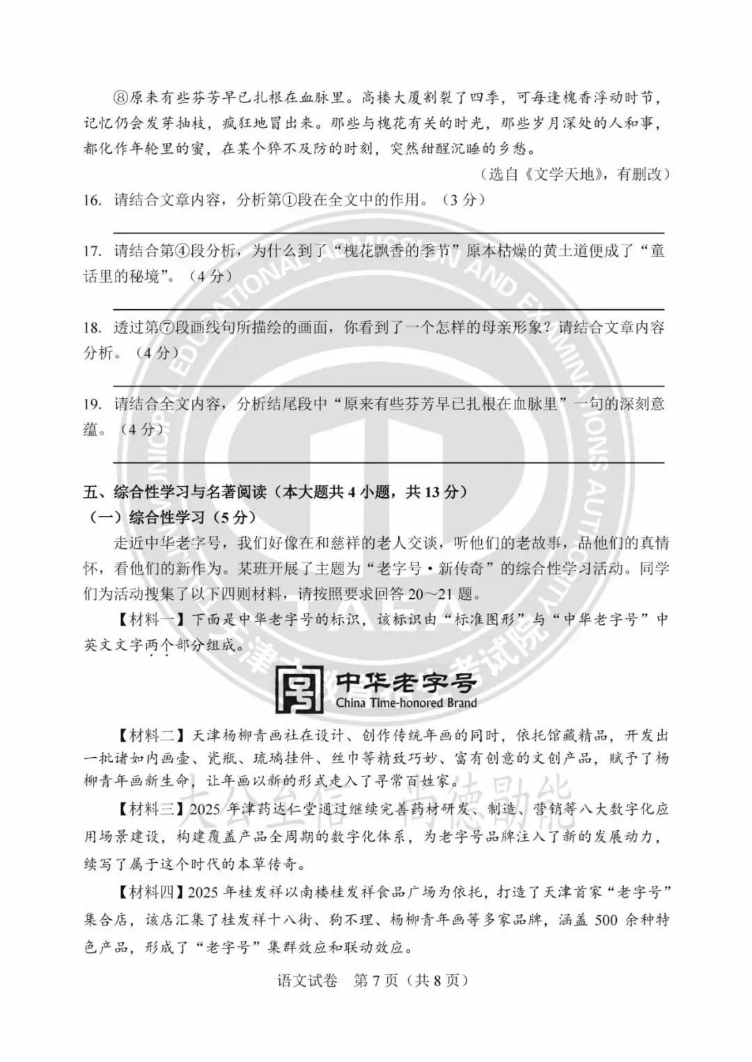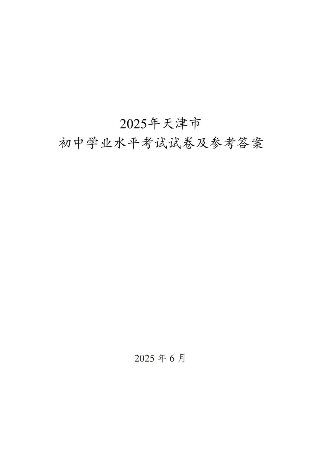 >2025年天津中考试卷及答案发布!