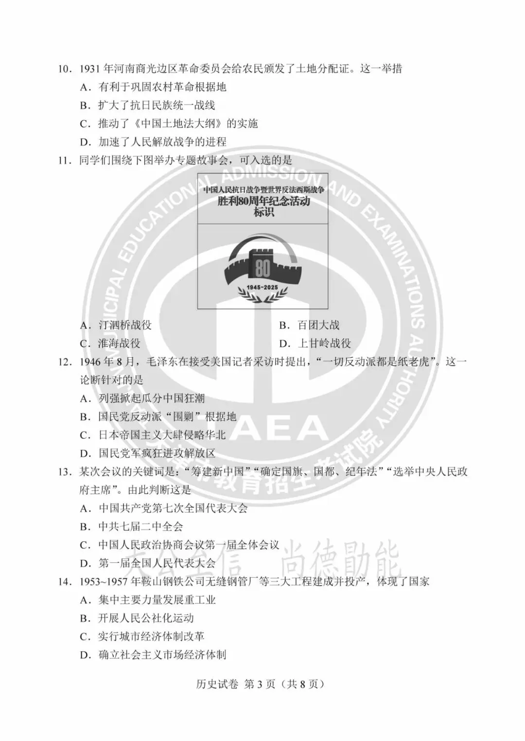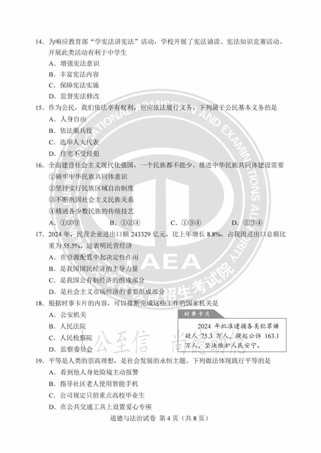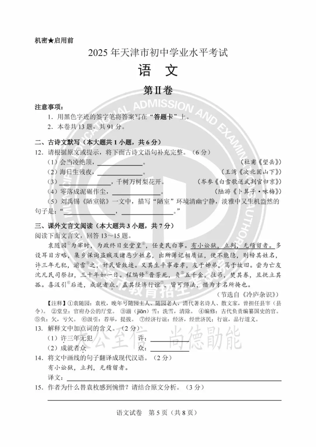 >2025年天津中考试卷及答案发布!
