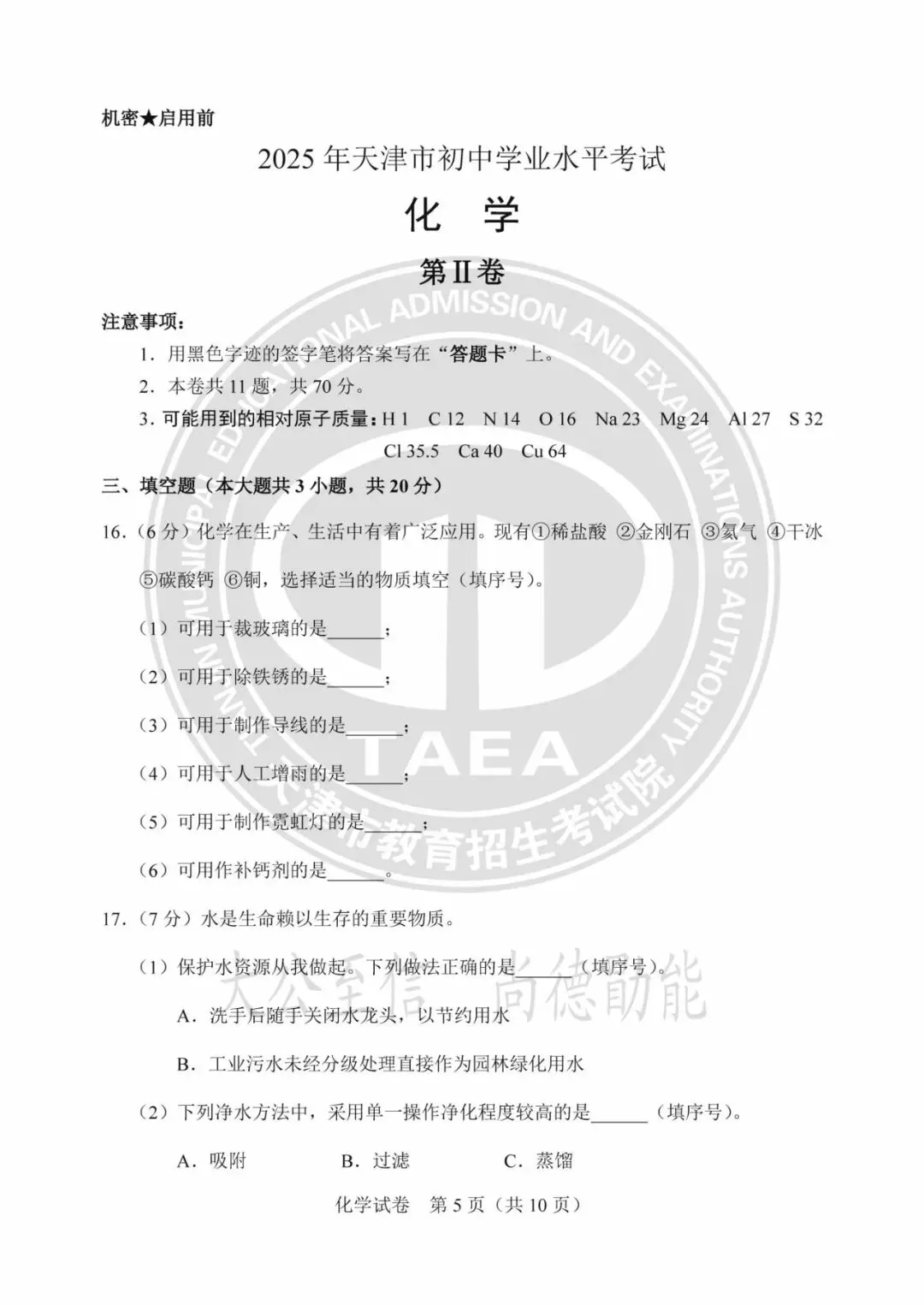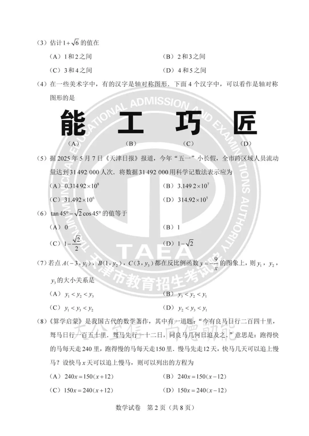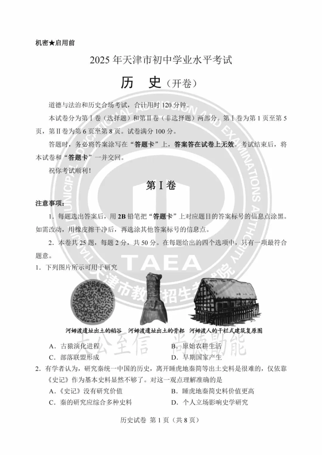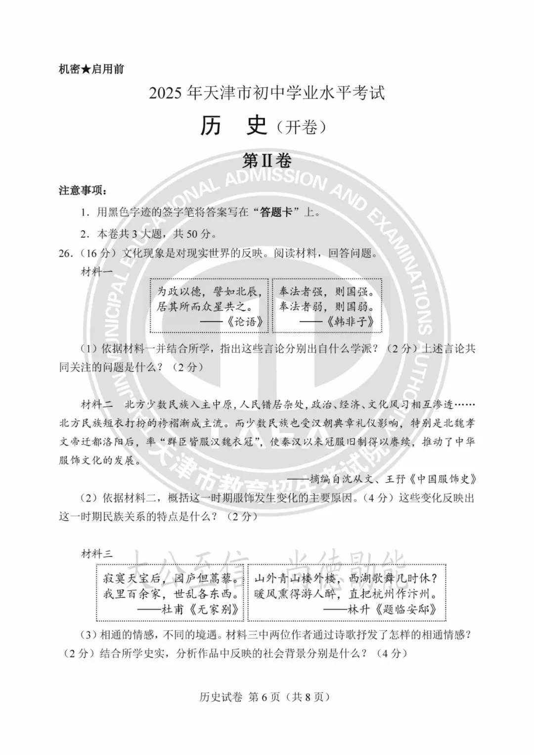 2025年天津中考试卷及答案发布!