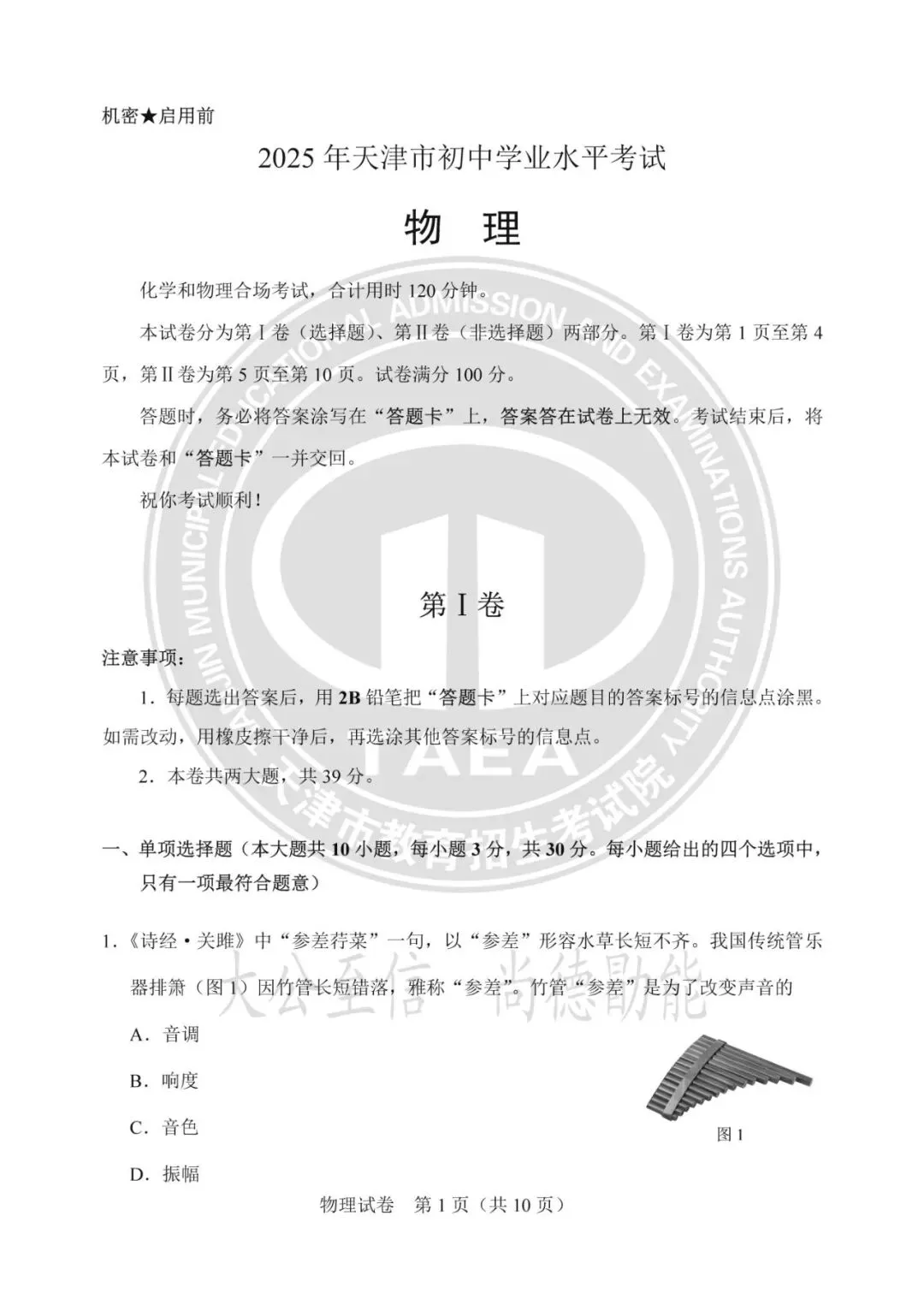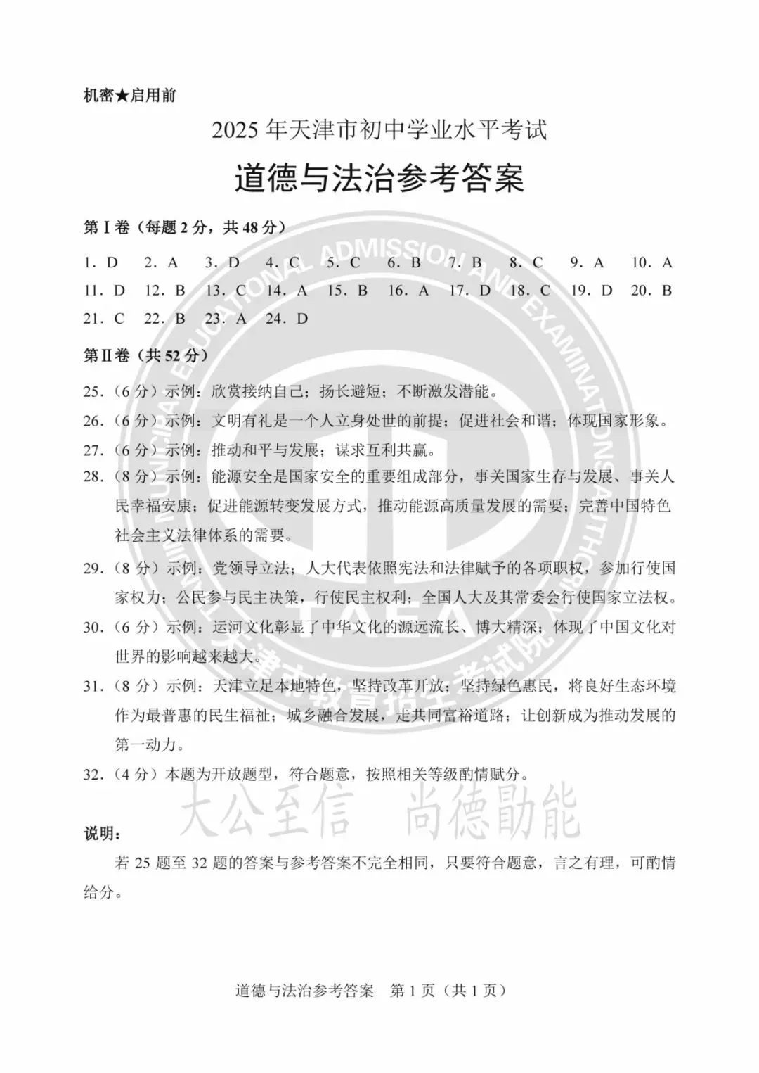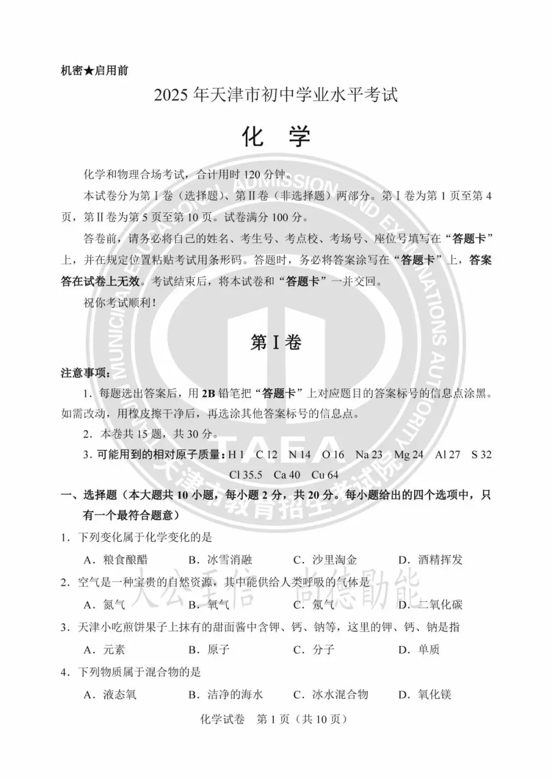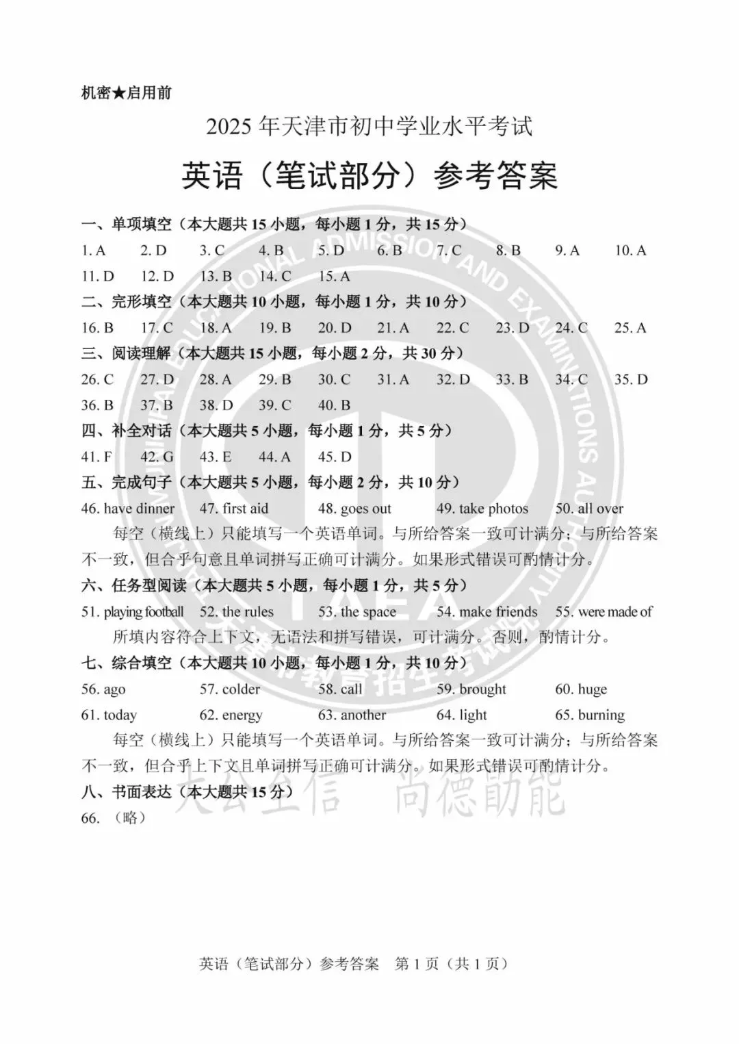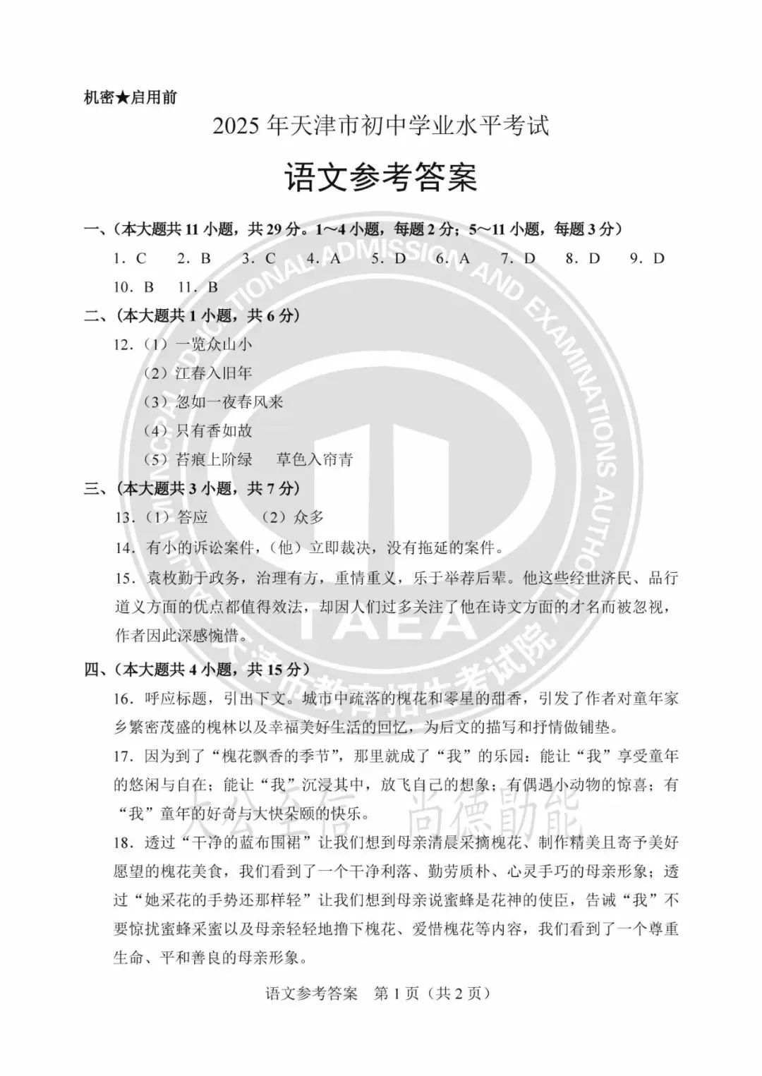 2025年天津中考试卷及答案发布!