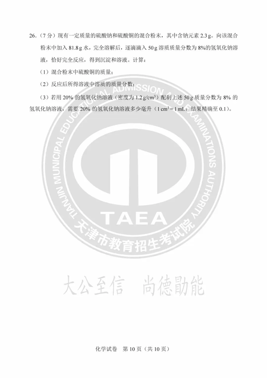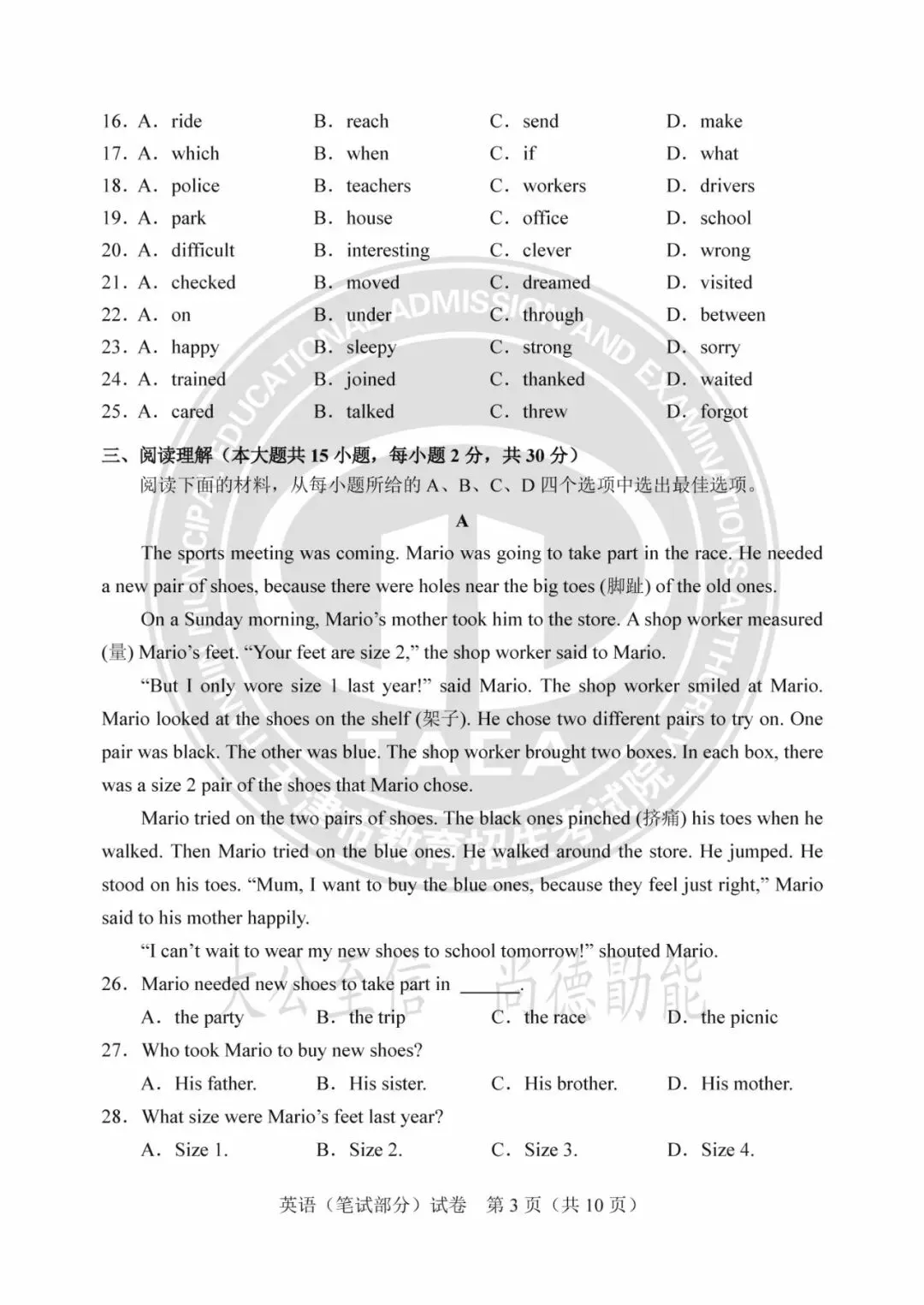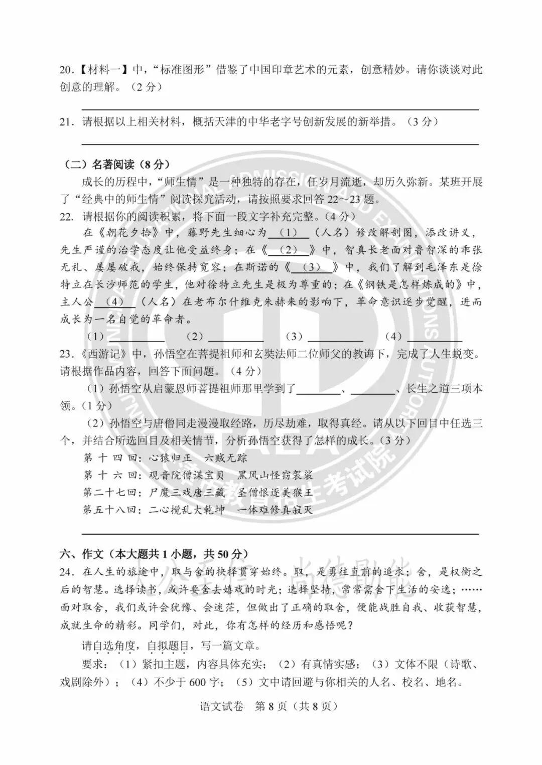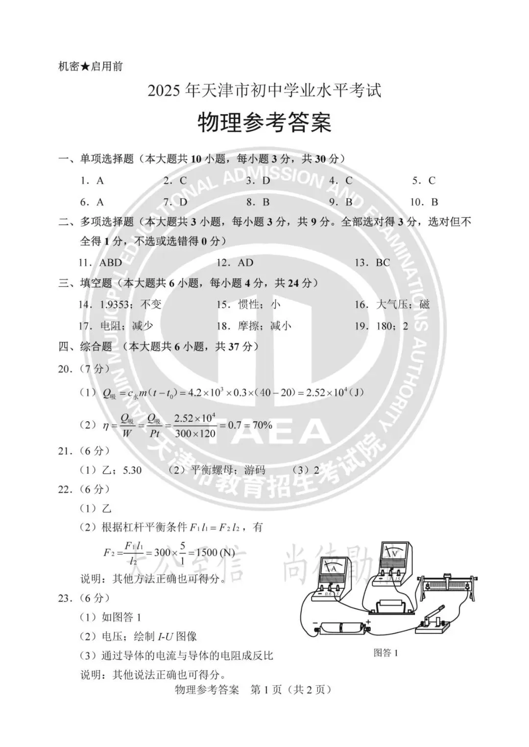 2025年天津中考试卷及答案发布!