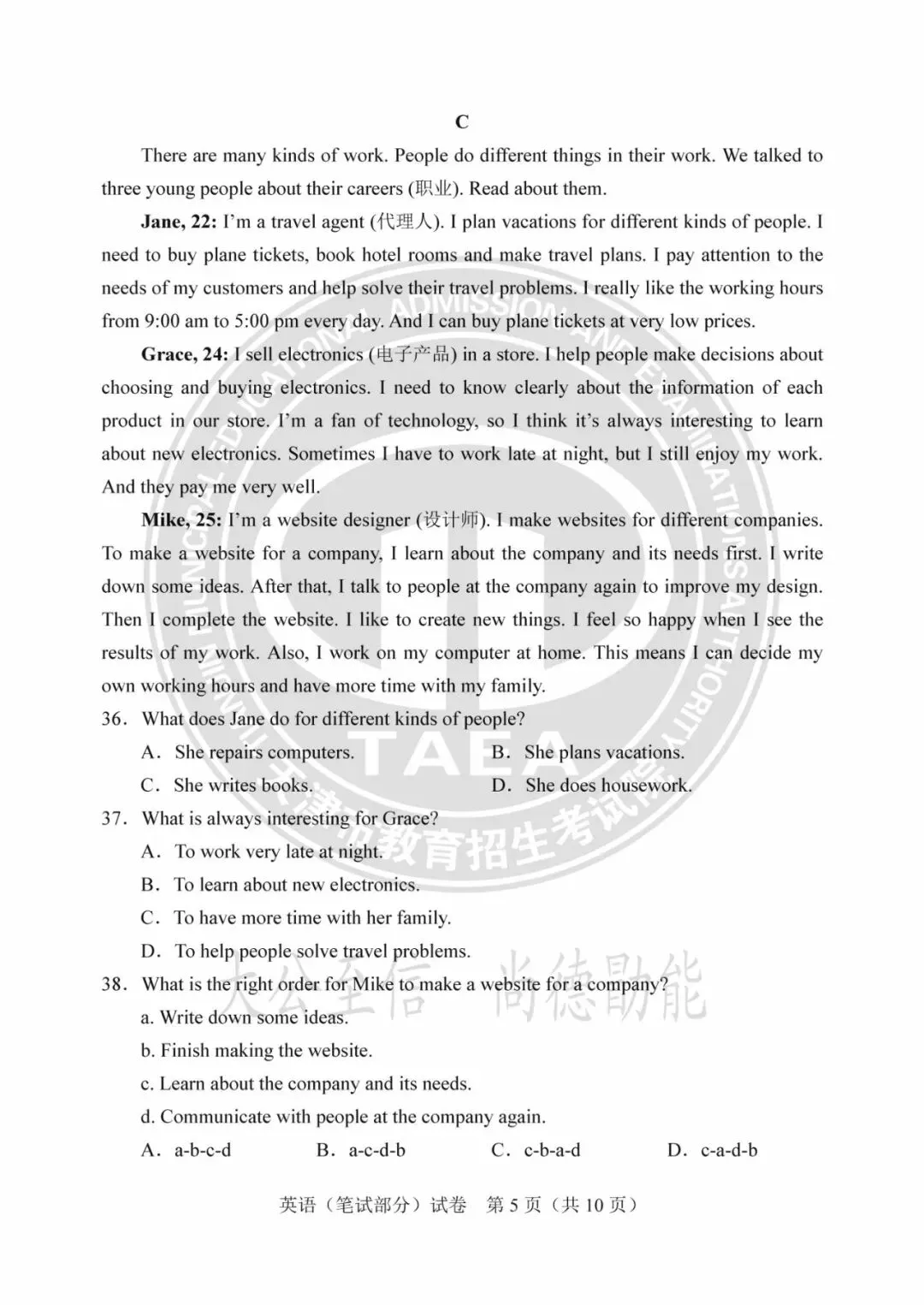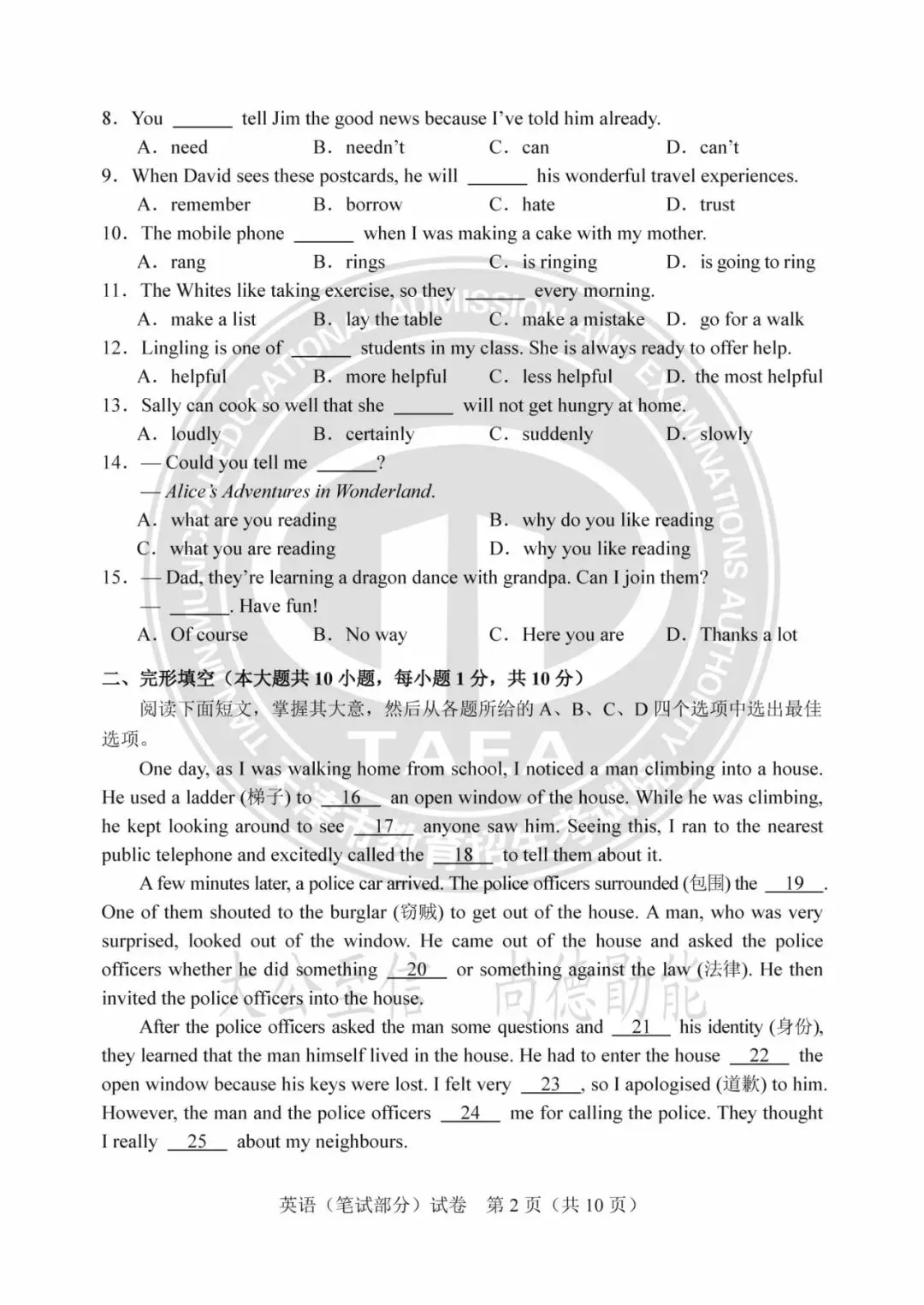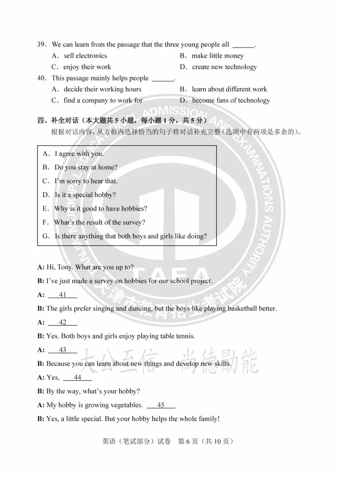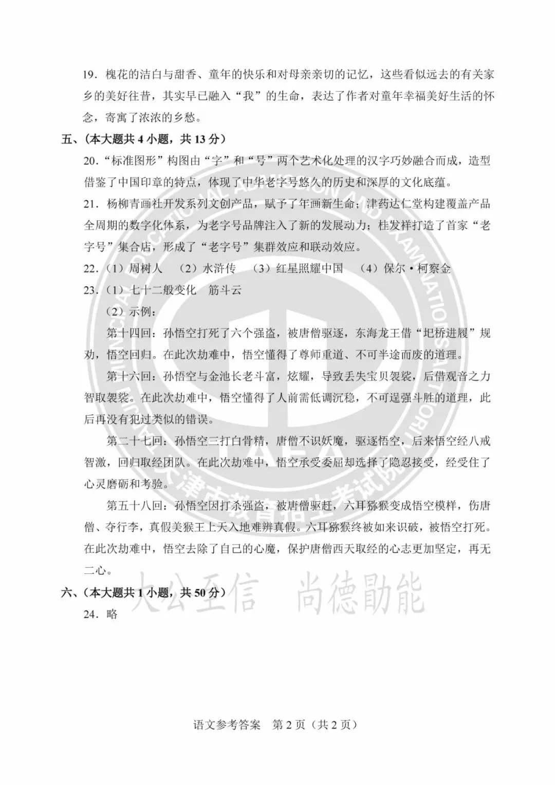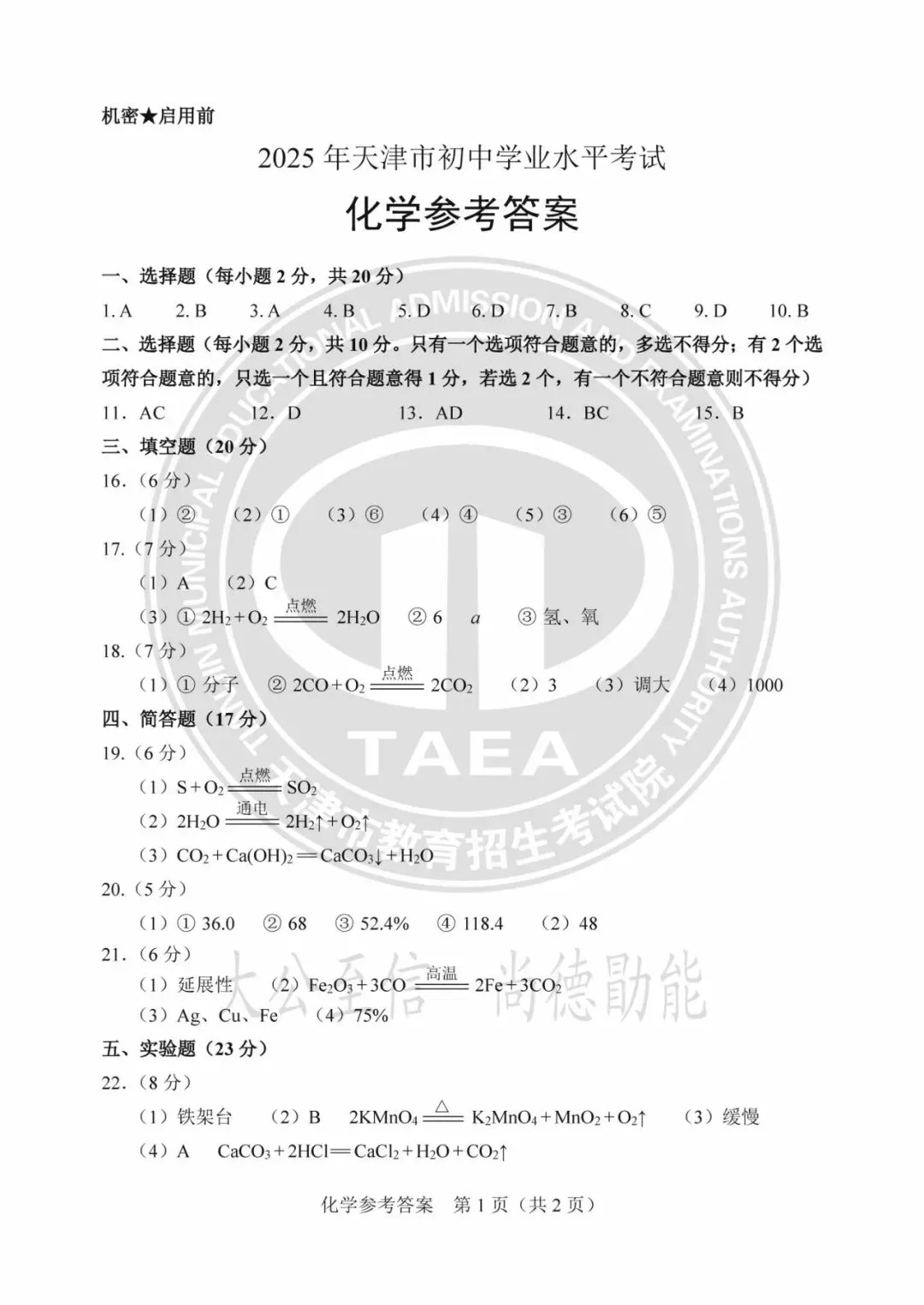 2025年天津中考试卷及答案发布!