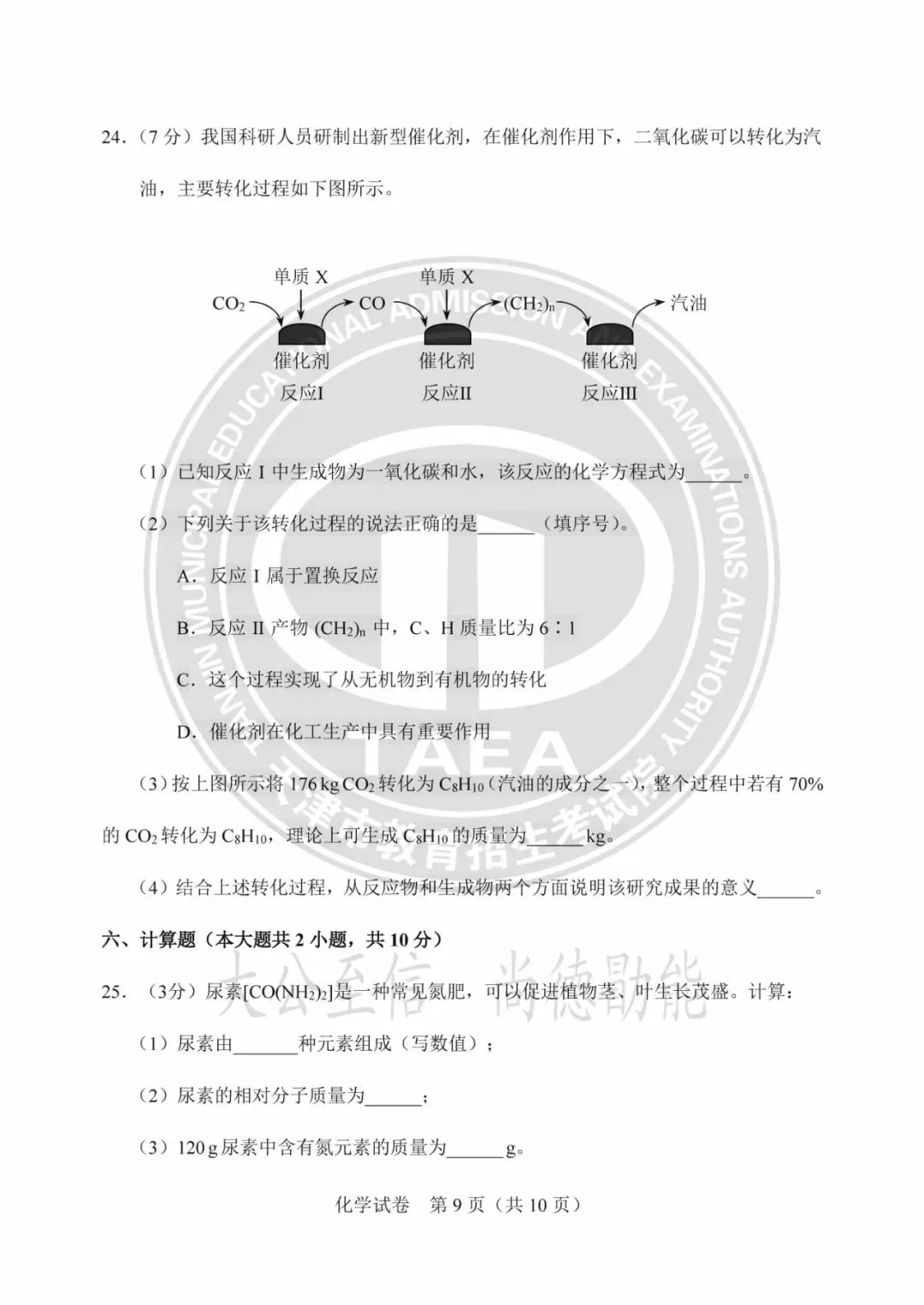2025年天津市初中学业水平考试试卷及参考答案