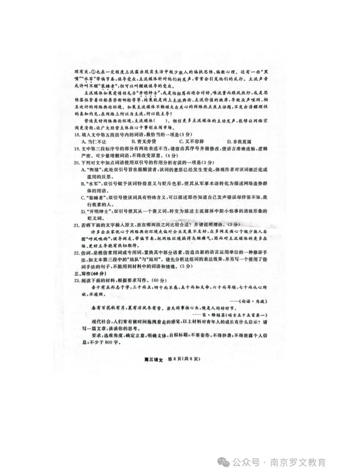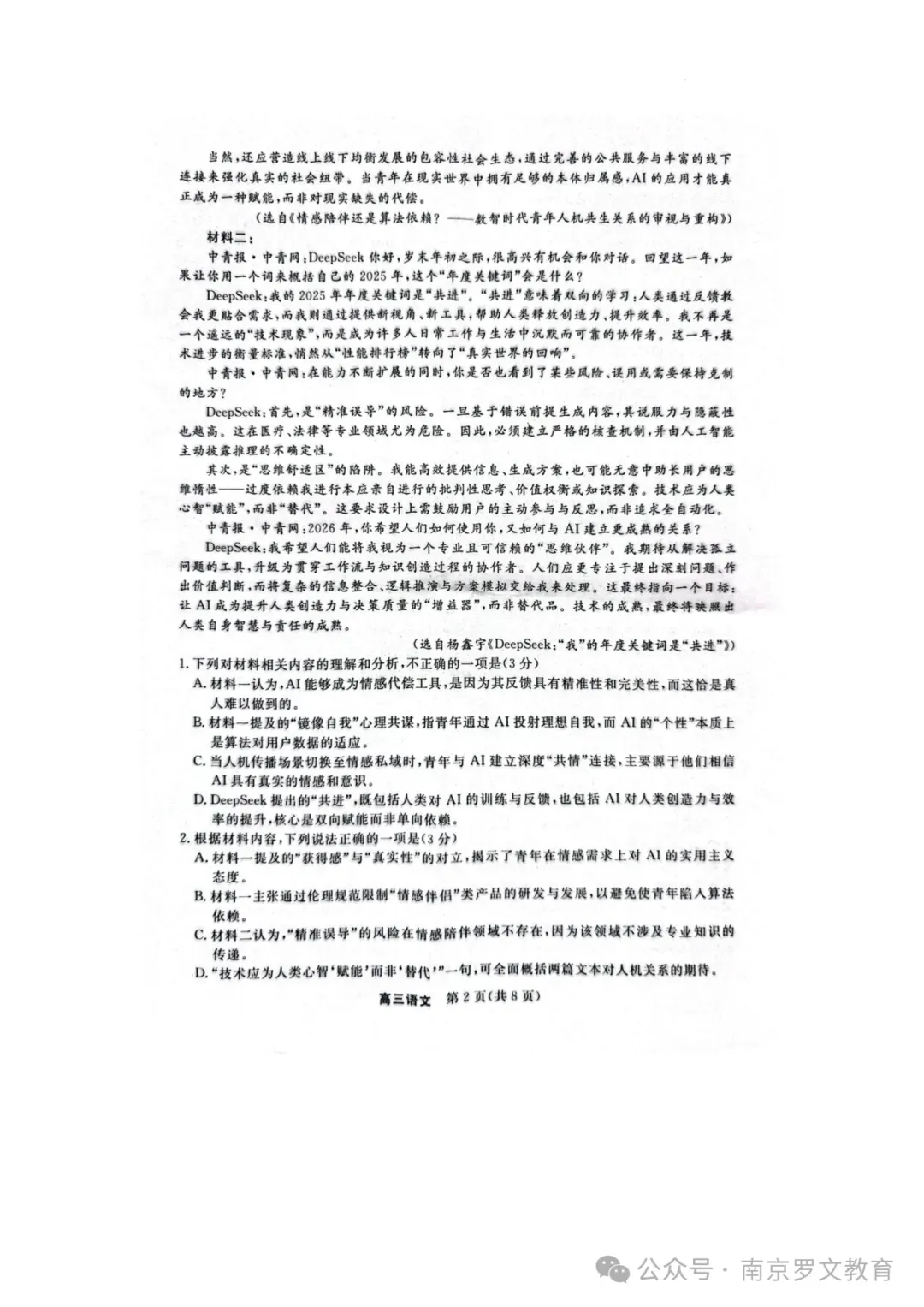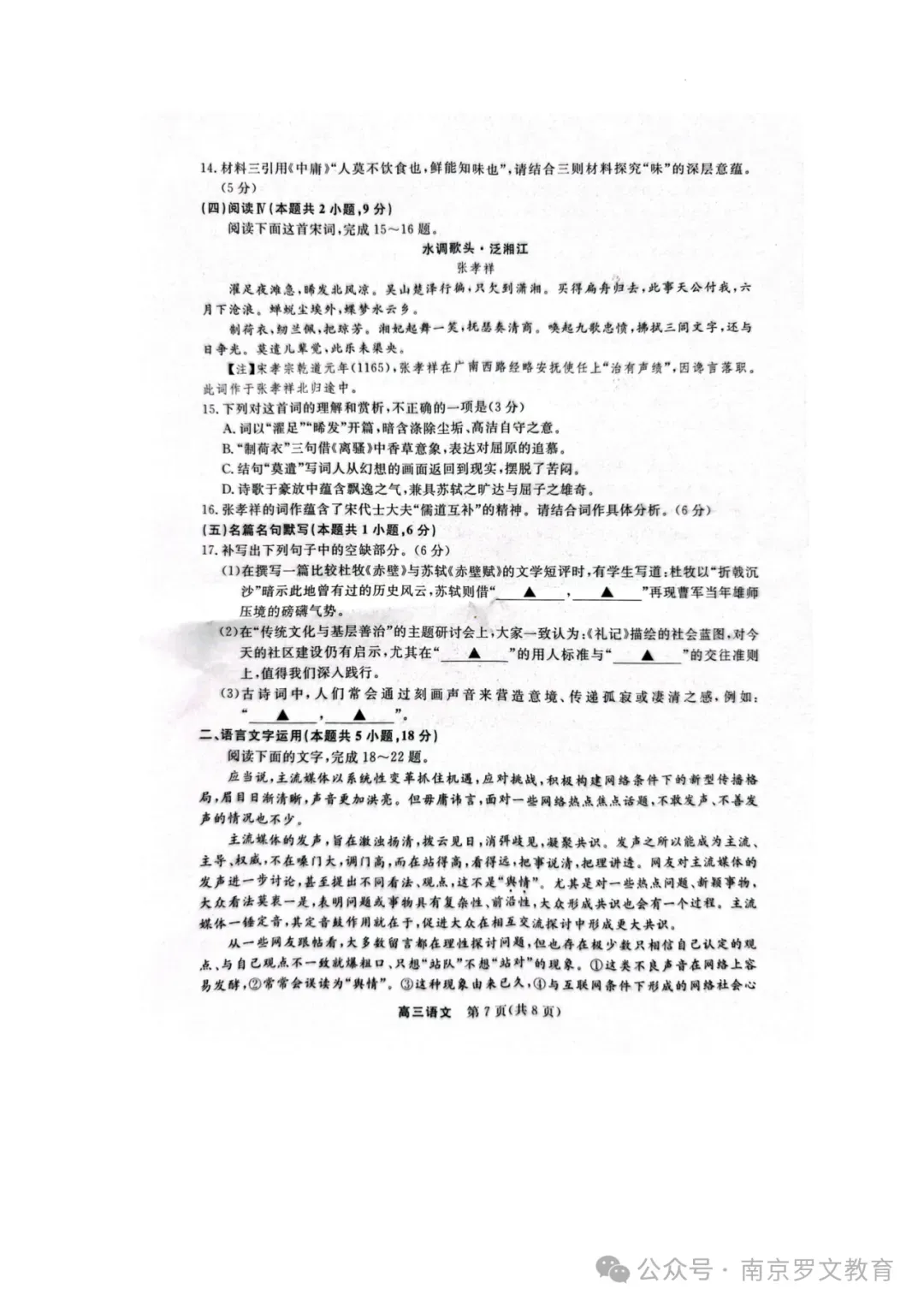 2026届江苏九校联考高三下学期3月联合检测语文+数学+化学+政治试题及答案