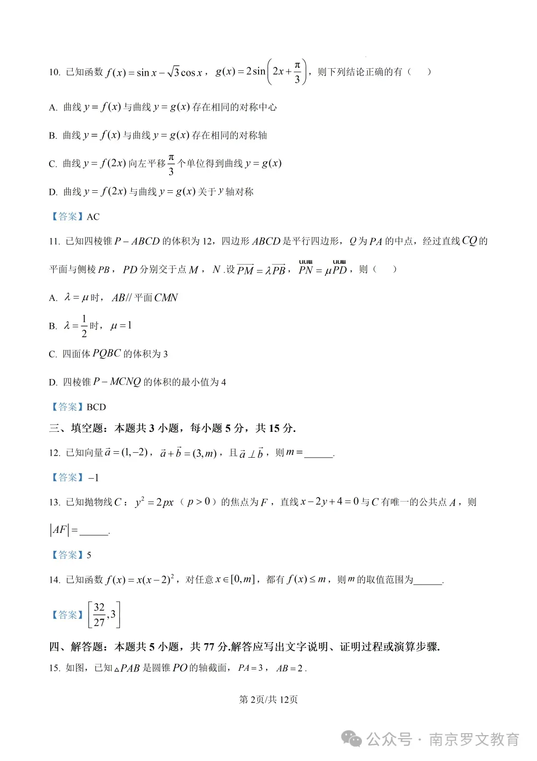 2026届江苏九校联考高三下学期3月联合检测数学试卷及答案