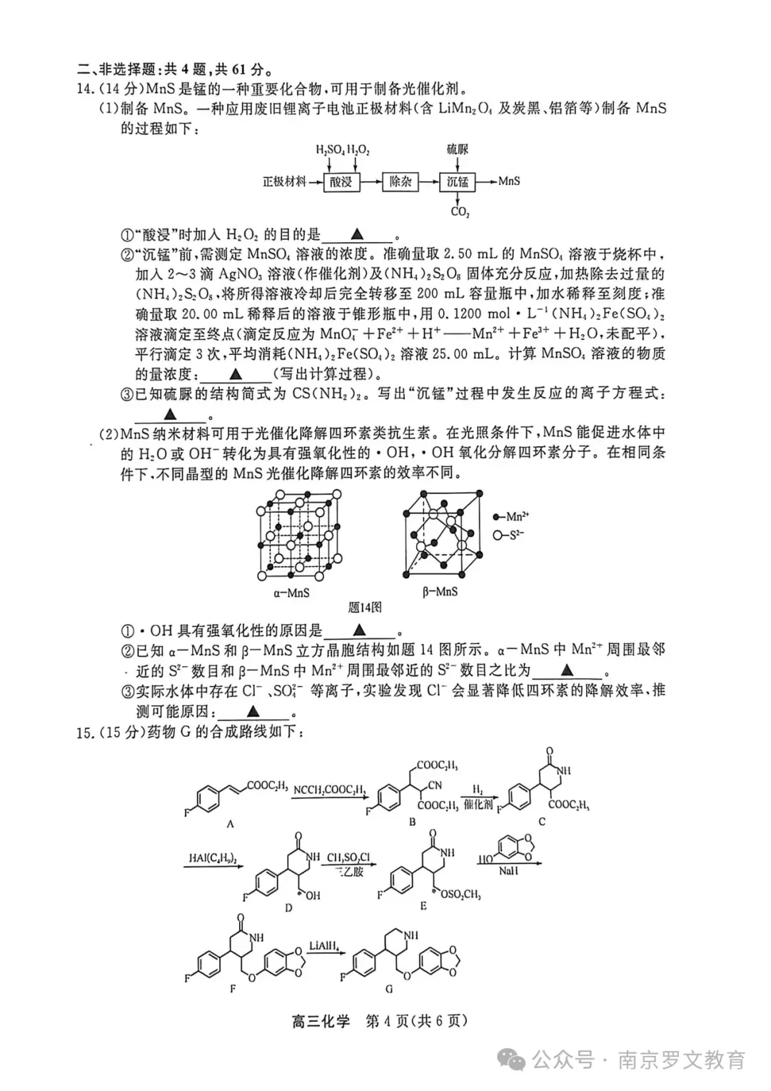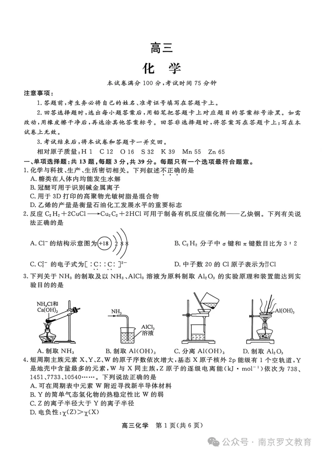 2026届江苏九校联考高三下学期3月联合检测化学试卷及答案