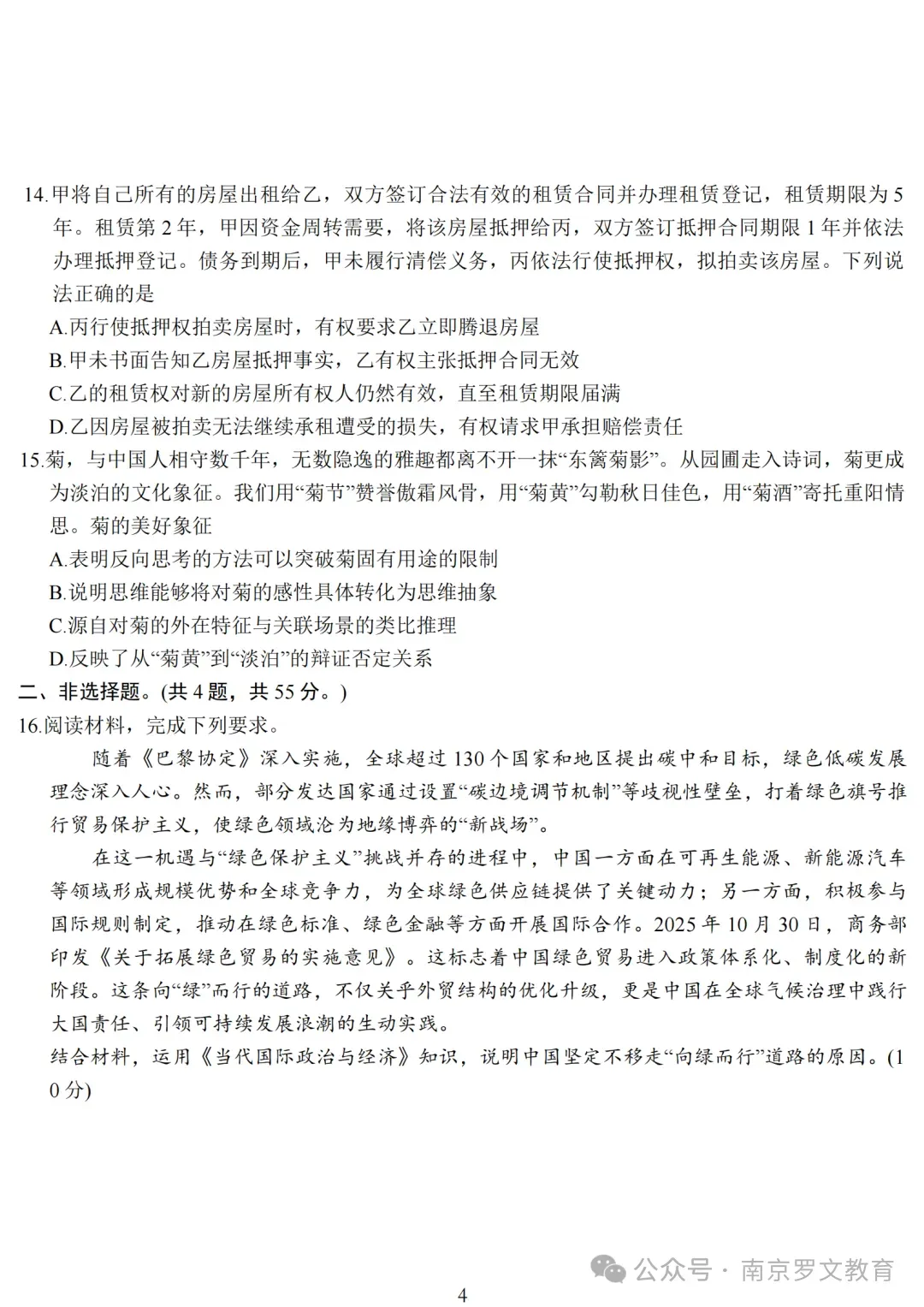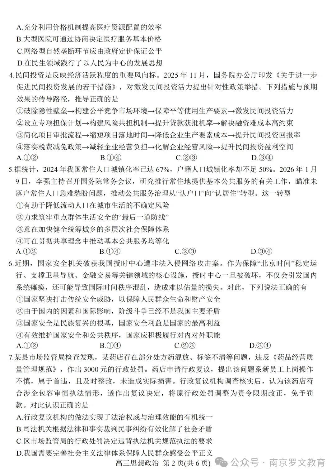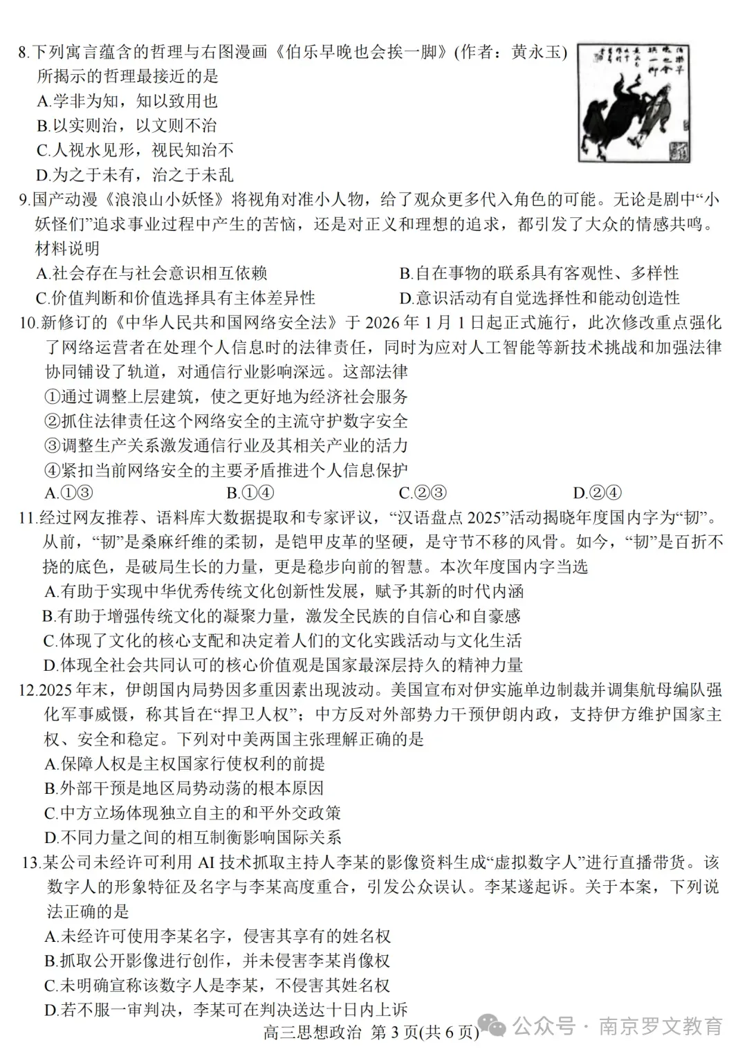 2026届江苏九校联考高三下学期3月联合检测政治试卷及答案