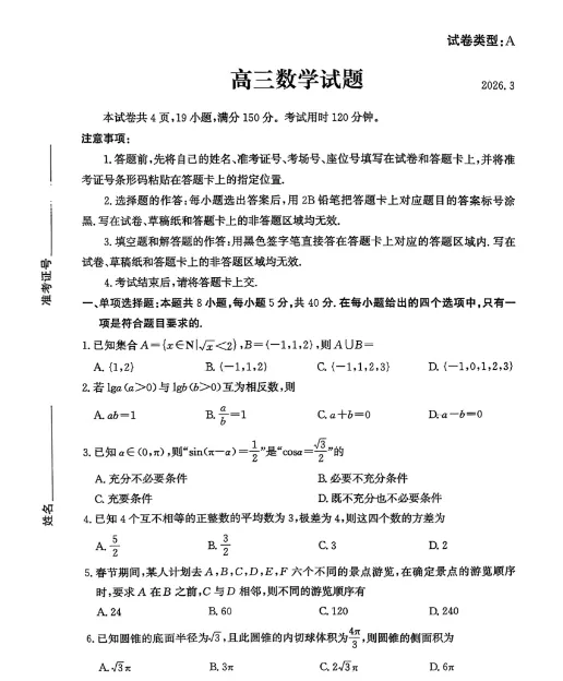 2026滨州一模下载考试试卷+答案汇总