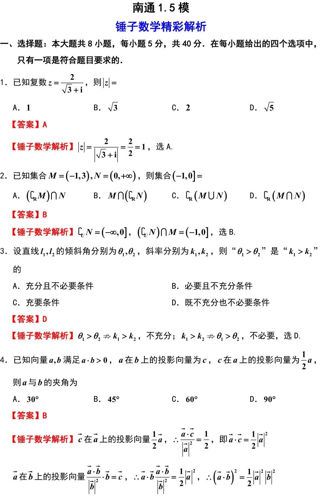 2026届南通1.5模数学试卷+答案(2026.3.14)