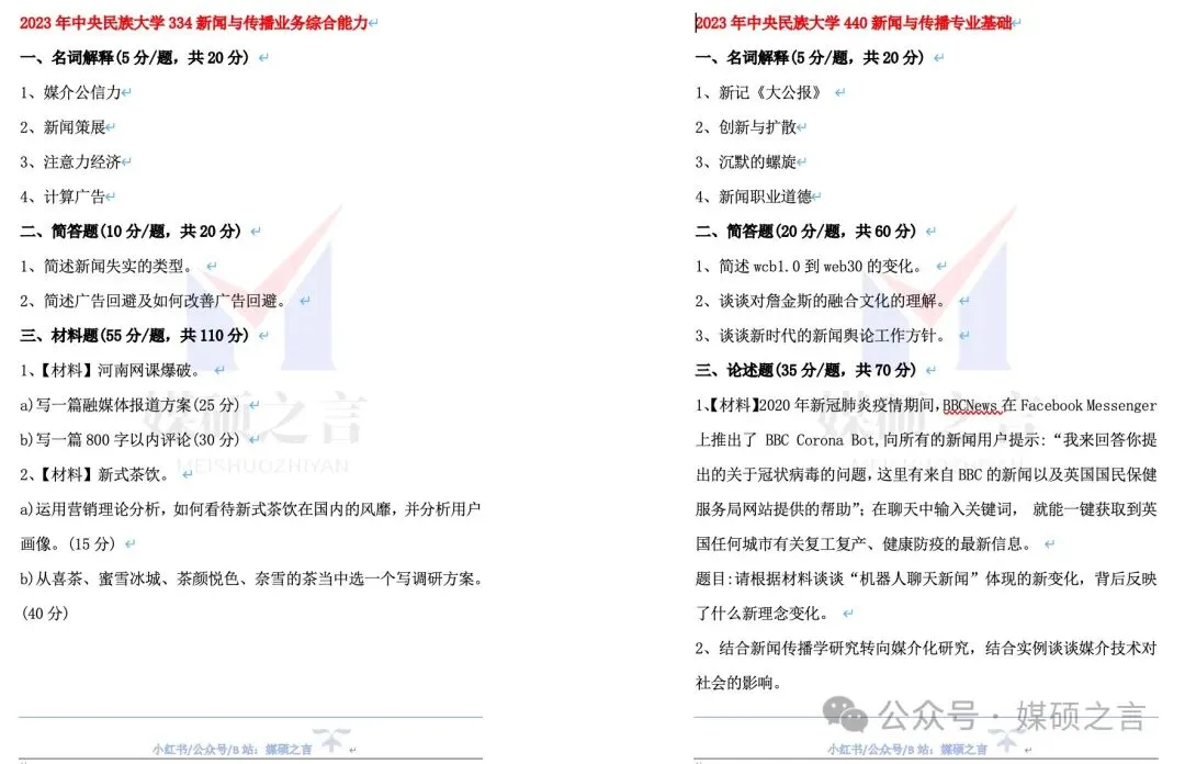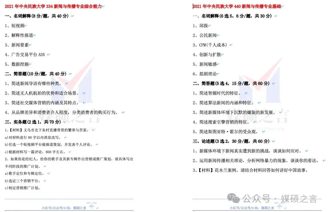 2025年中央民族大学(334)新闻与传播专业综合能力(学专合卷)