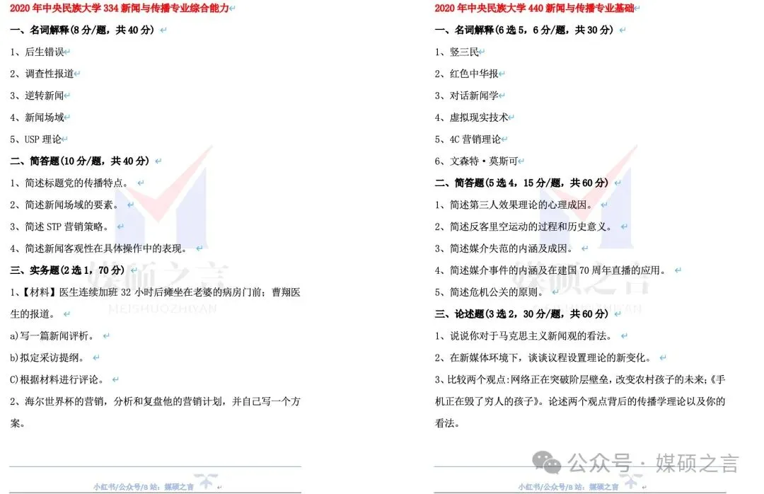 完整文档:[具体院校名称]2020 - 2026新传考研真题 专硕|学硕