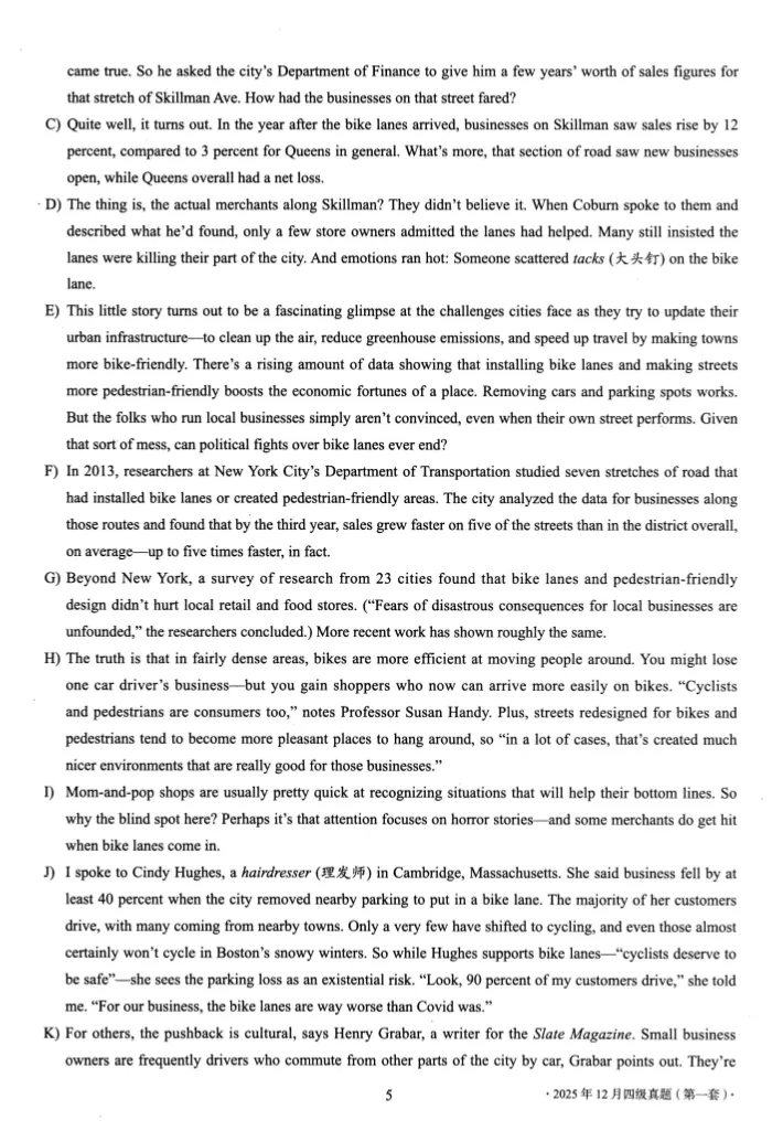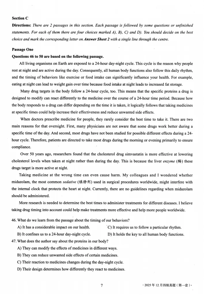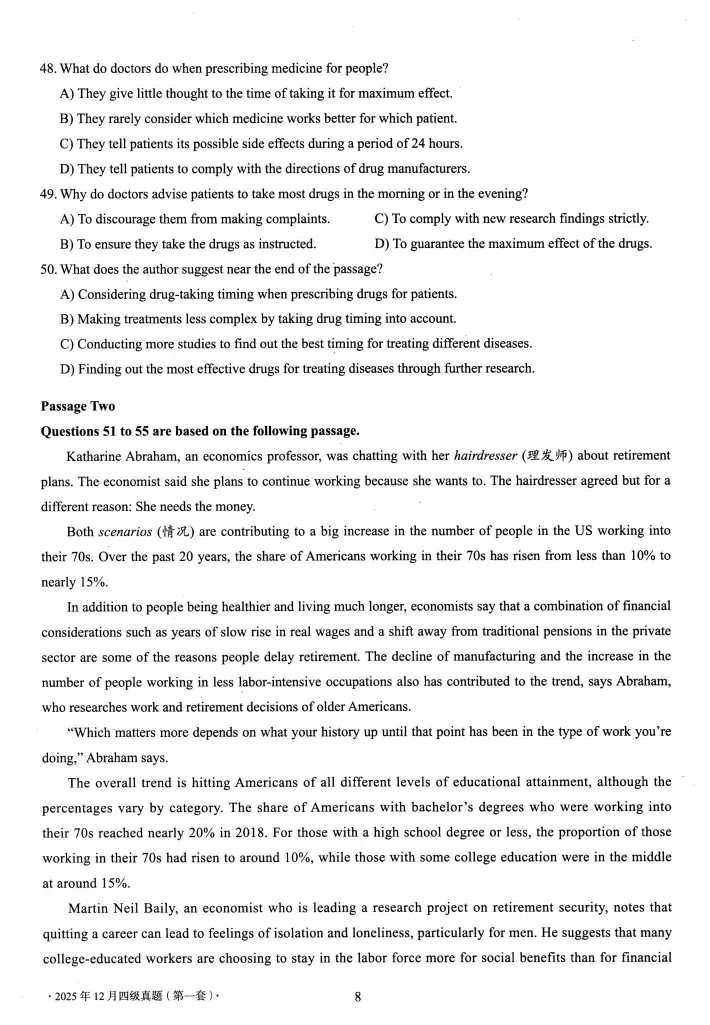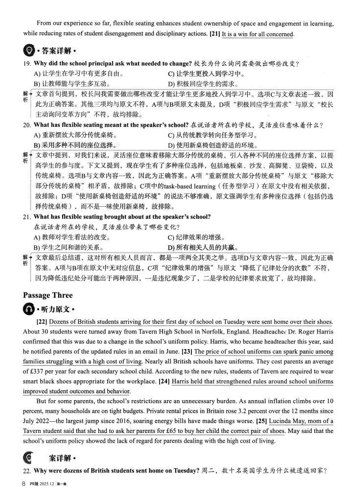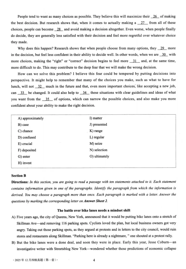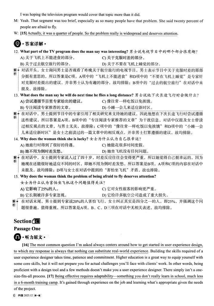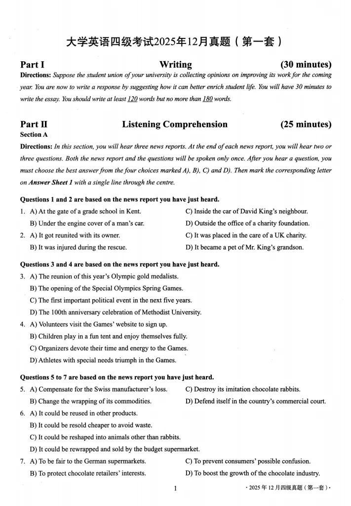 【资源名称】:2025年12月英语四级考试真题及答案解析(第1套)