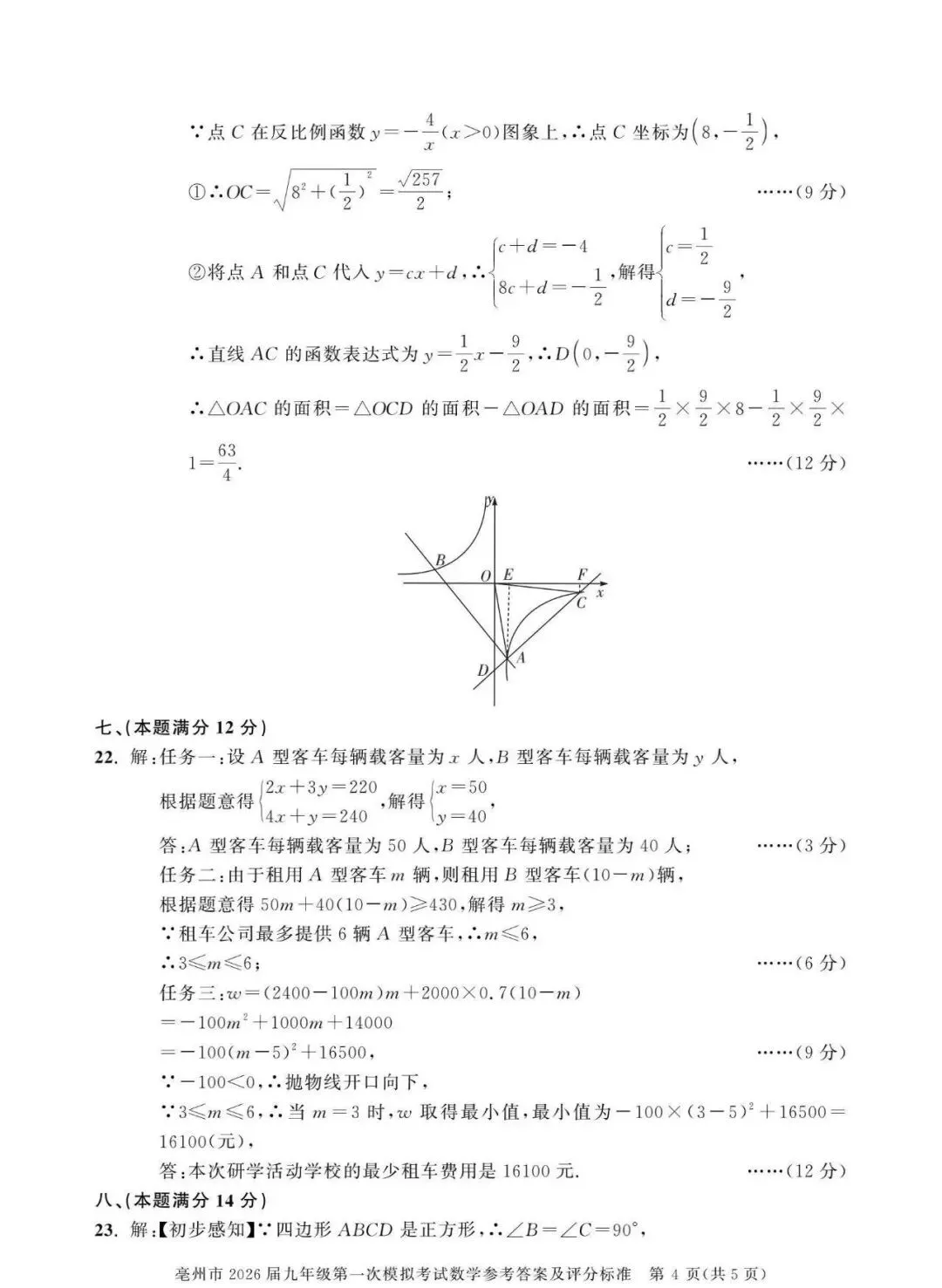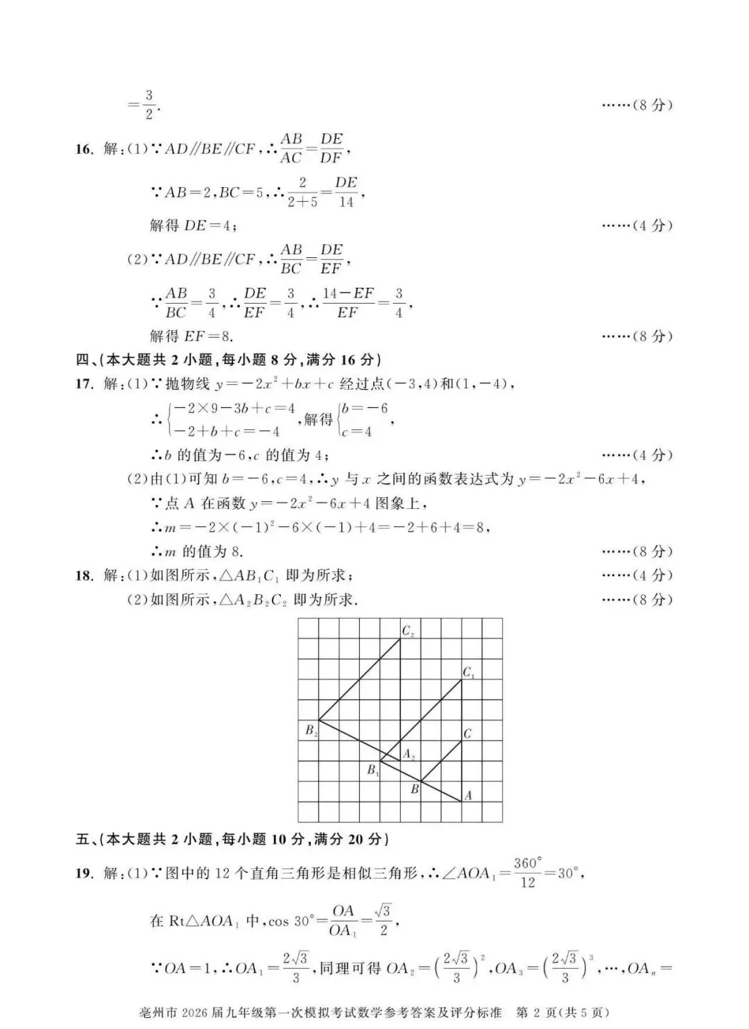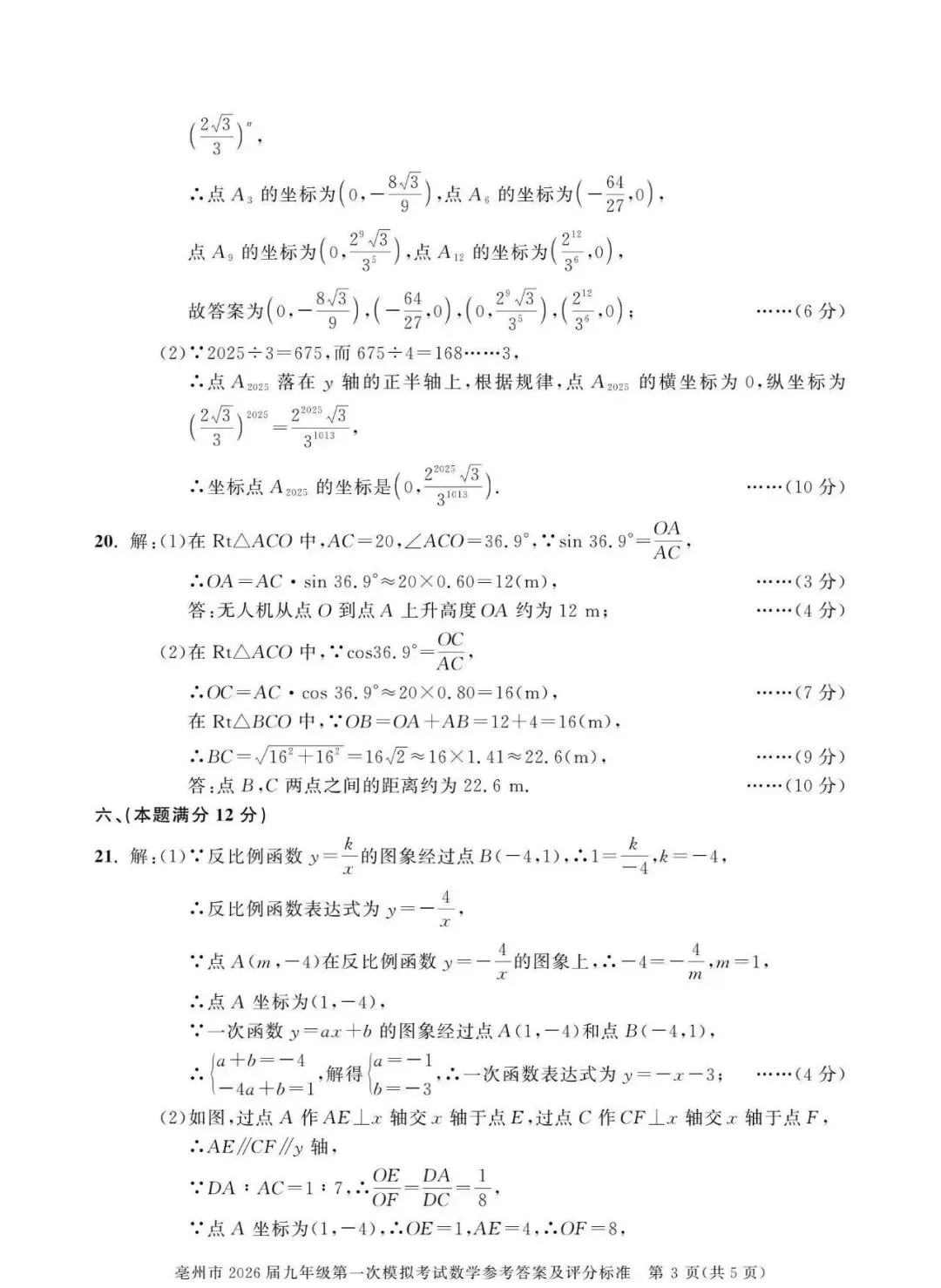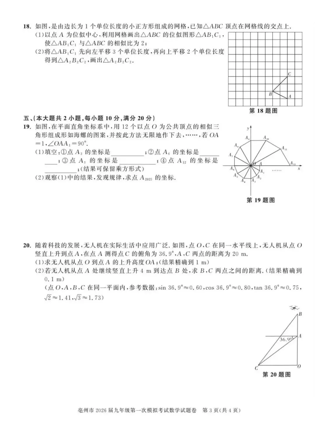 【安徽亳州】2026九年级数学一模试卷+答案