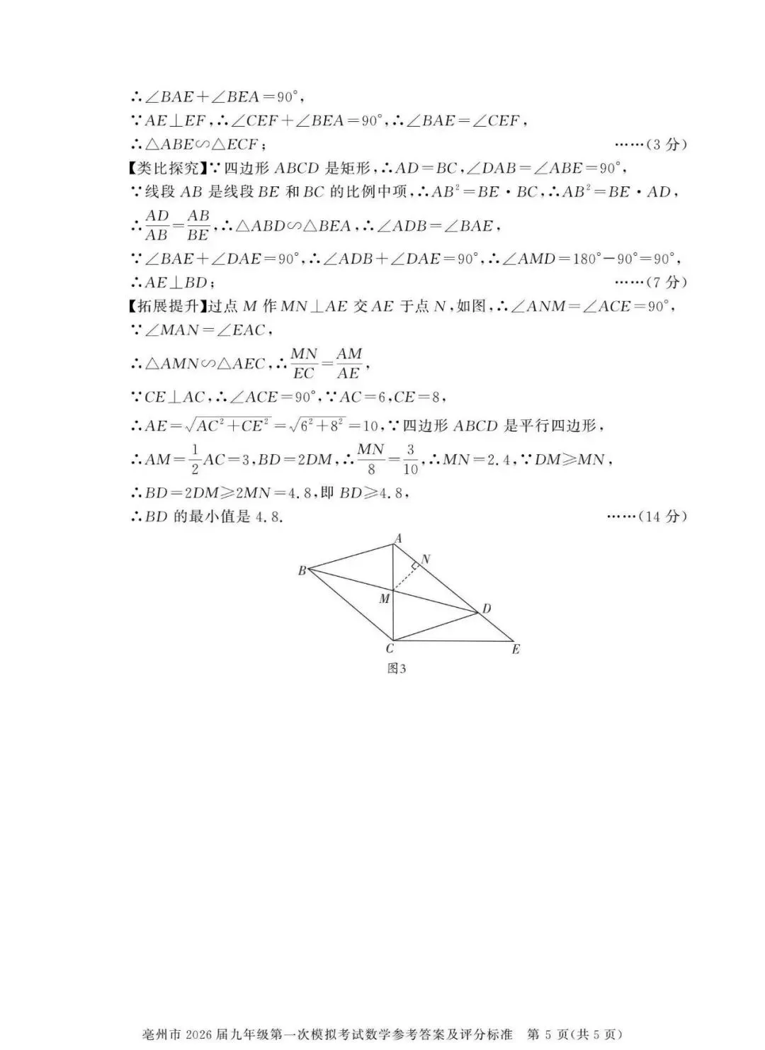 >【安徽亳州】2026九年级数学一模试卷+答案