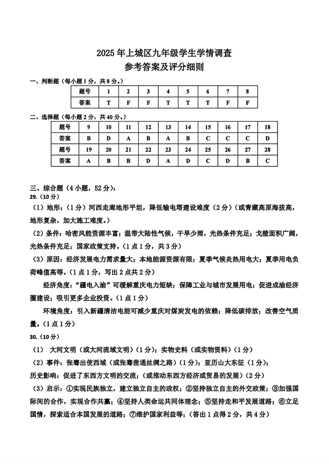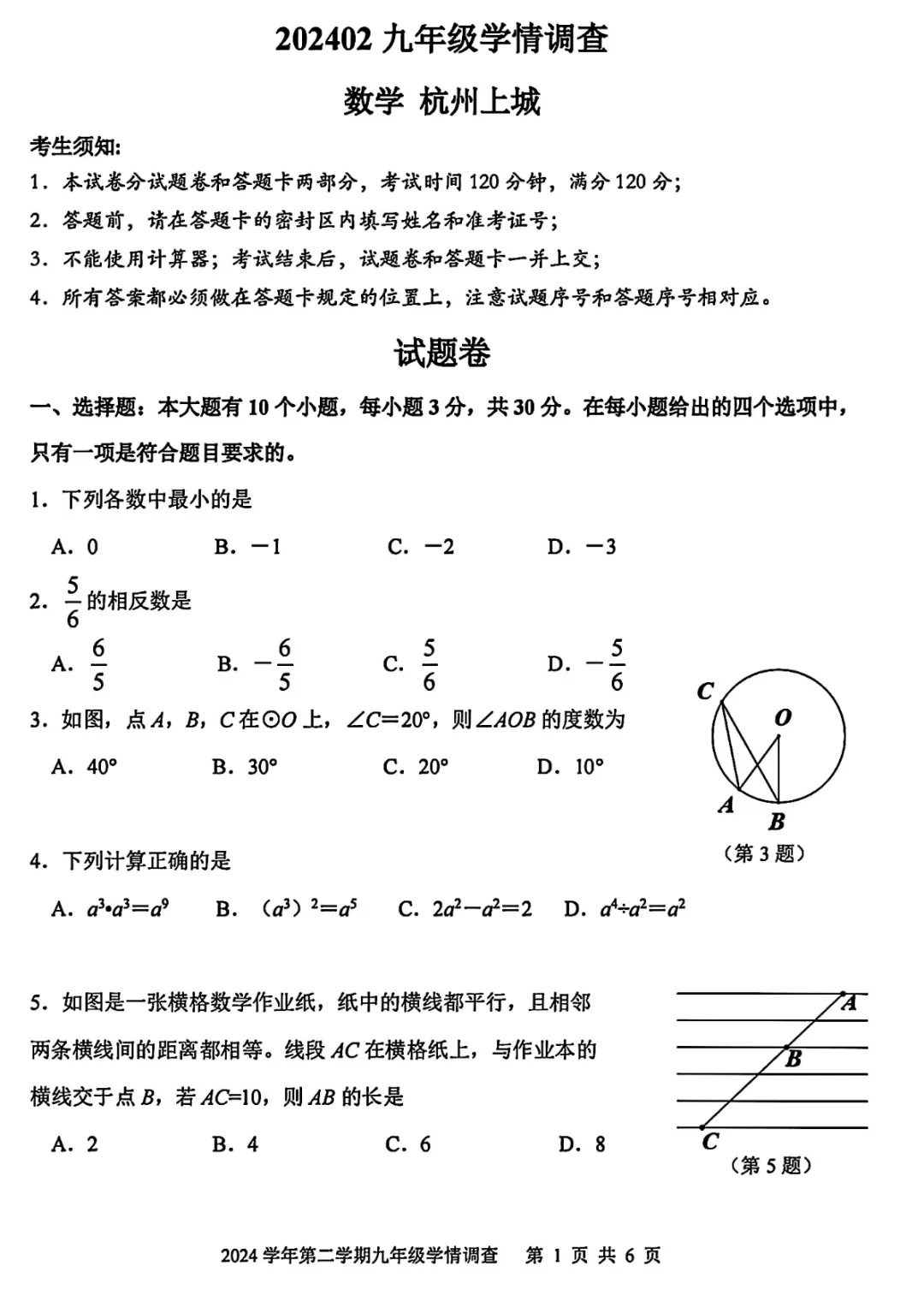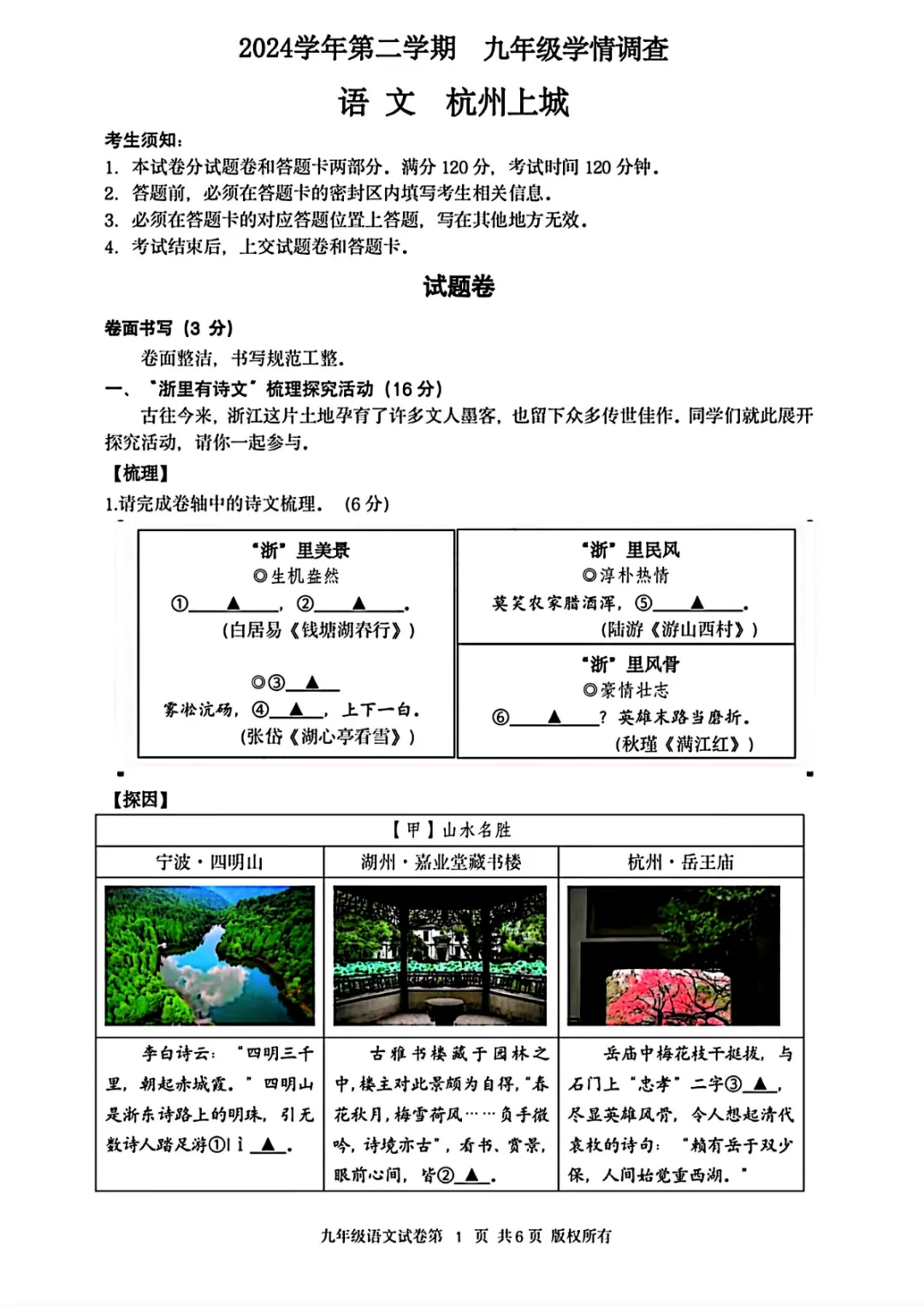 >中考一模|2025年4月上城区模考试卷+答案(内含下载链接)